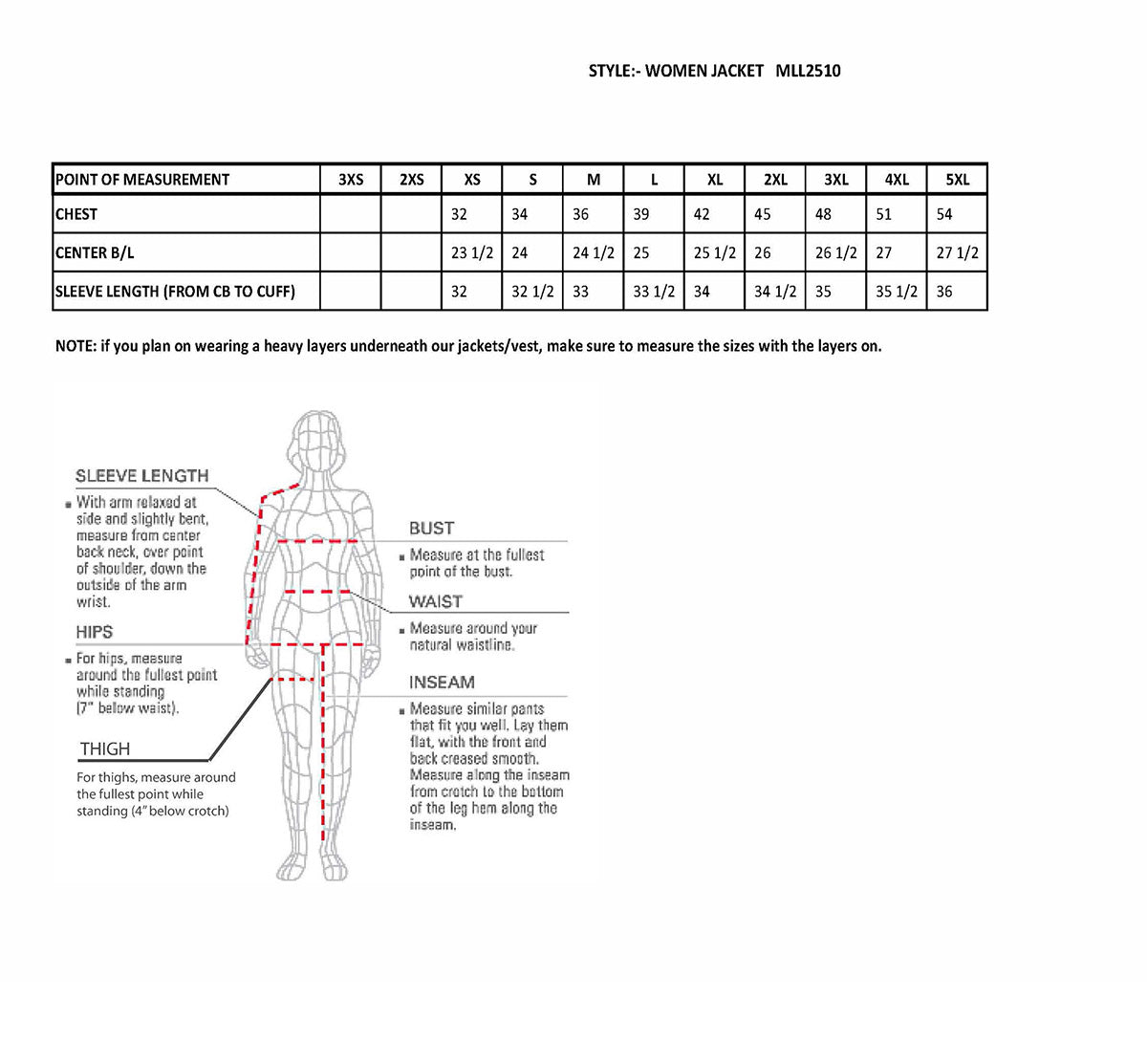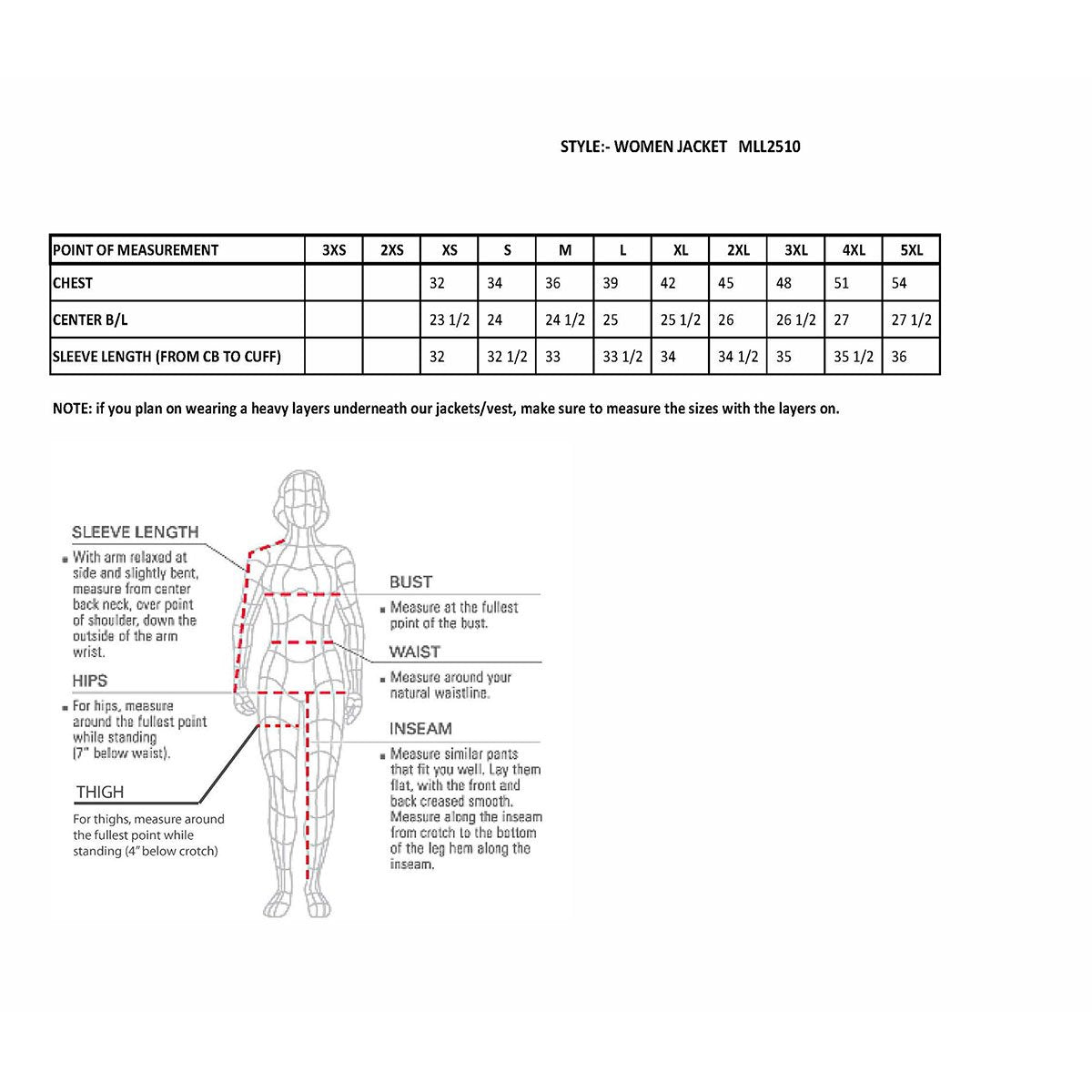 - Ladies leather can run two sizes smaller – measure your chest size!
