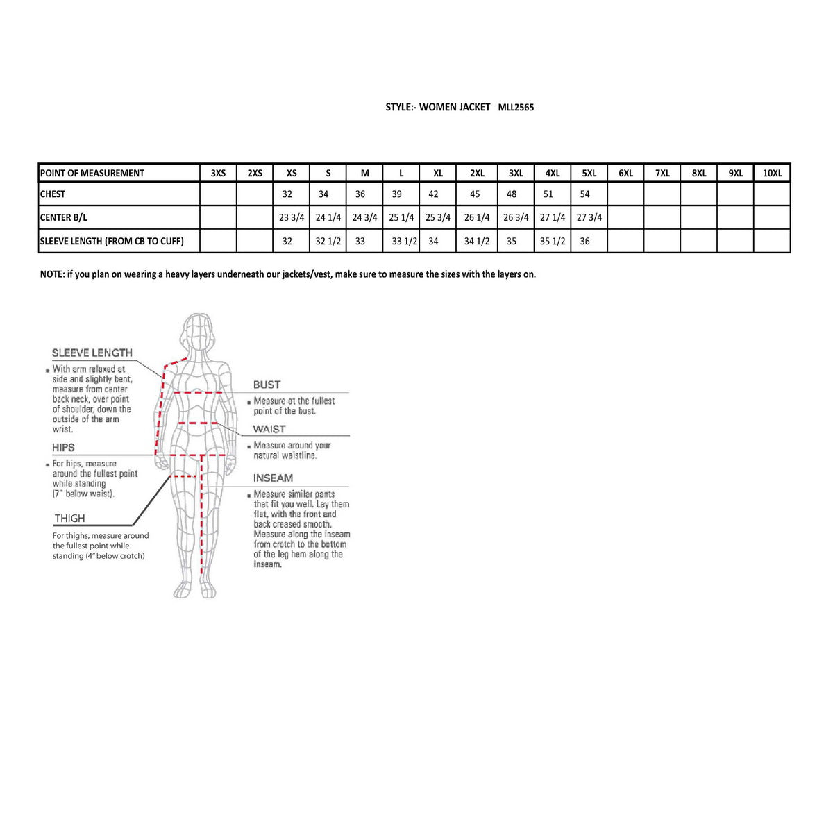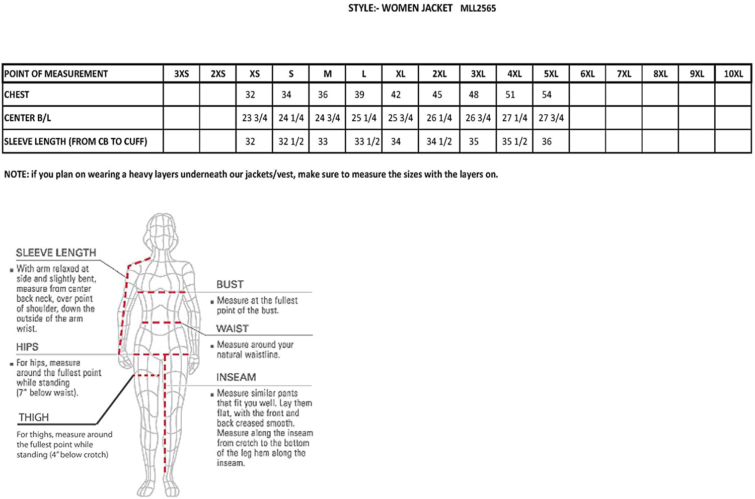 - Ladies leather can run two sizes smaller – measure your chest size!