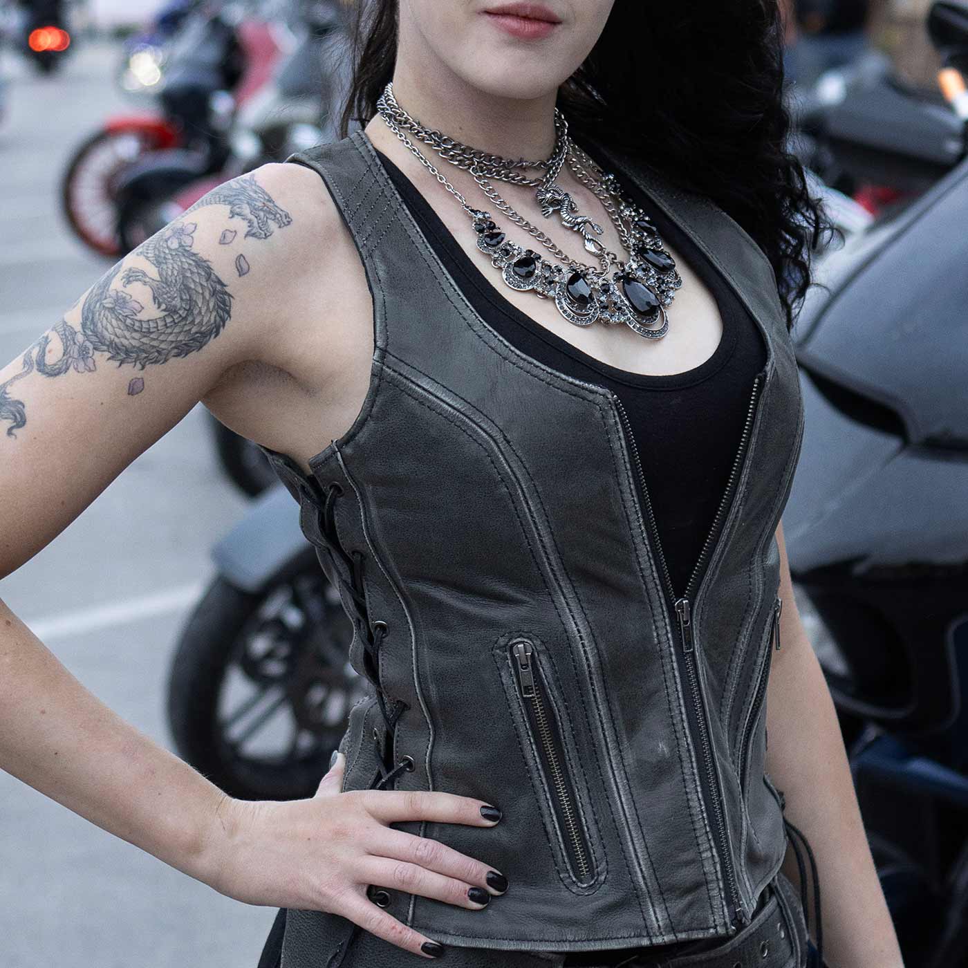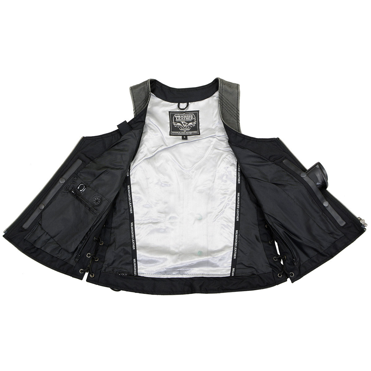 Milwaukee Leather Women's V-Neck Distress Grey Premium Leather Motorcycle Rider Vest w/ Side Laces MLL4531