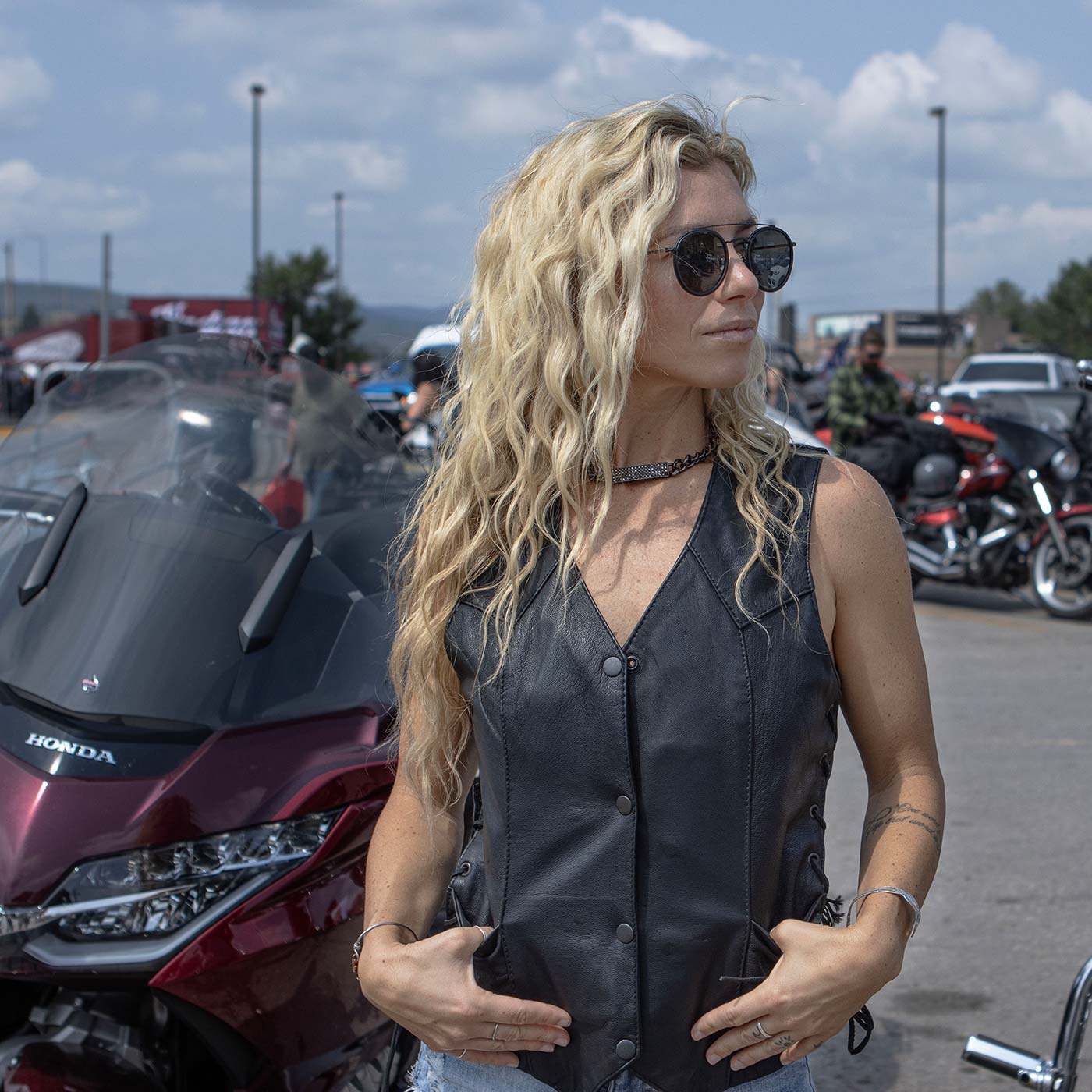 Milwaukee Leather MLL4546 Women's Black Premium Leather Lightweight V-Neck Motorcycle Rider Vest w/ Side Laces