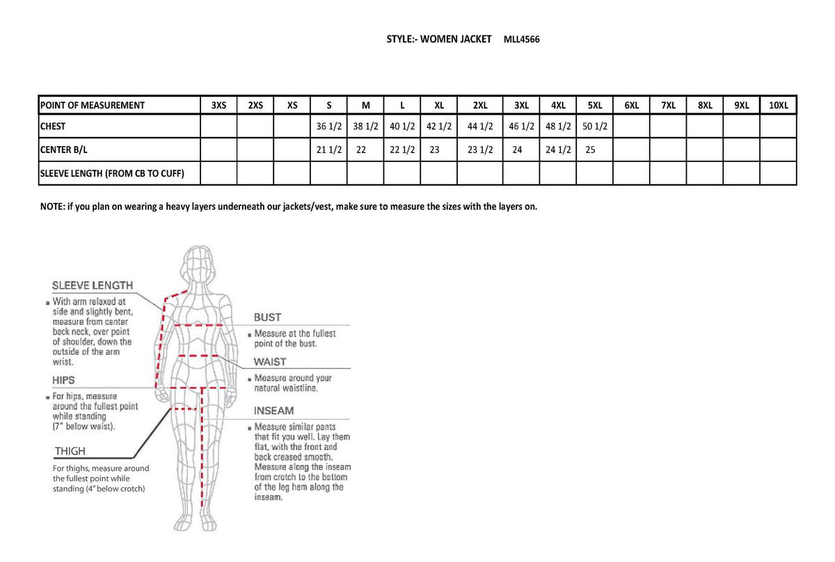 - Ladies leather can run two sizes smaller – measure your chest size!
