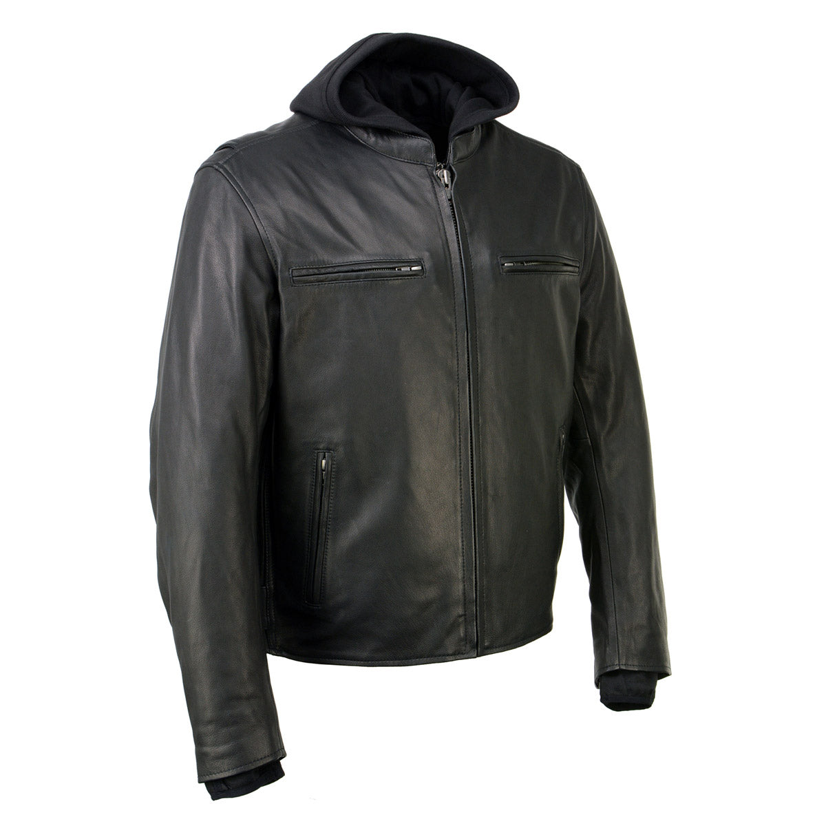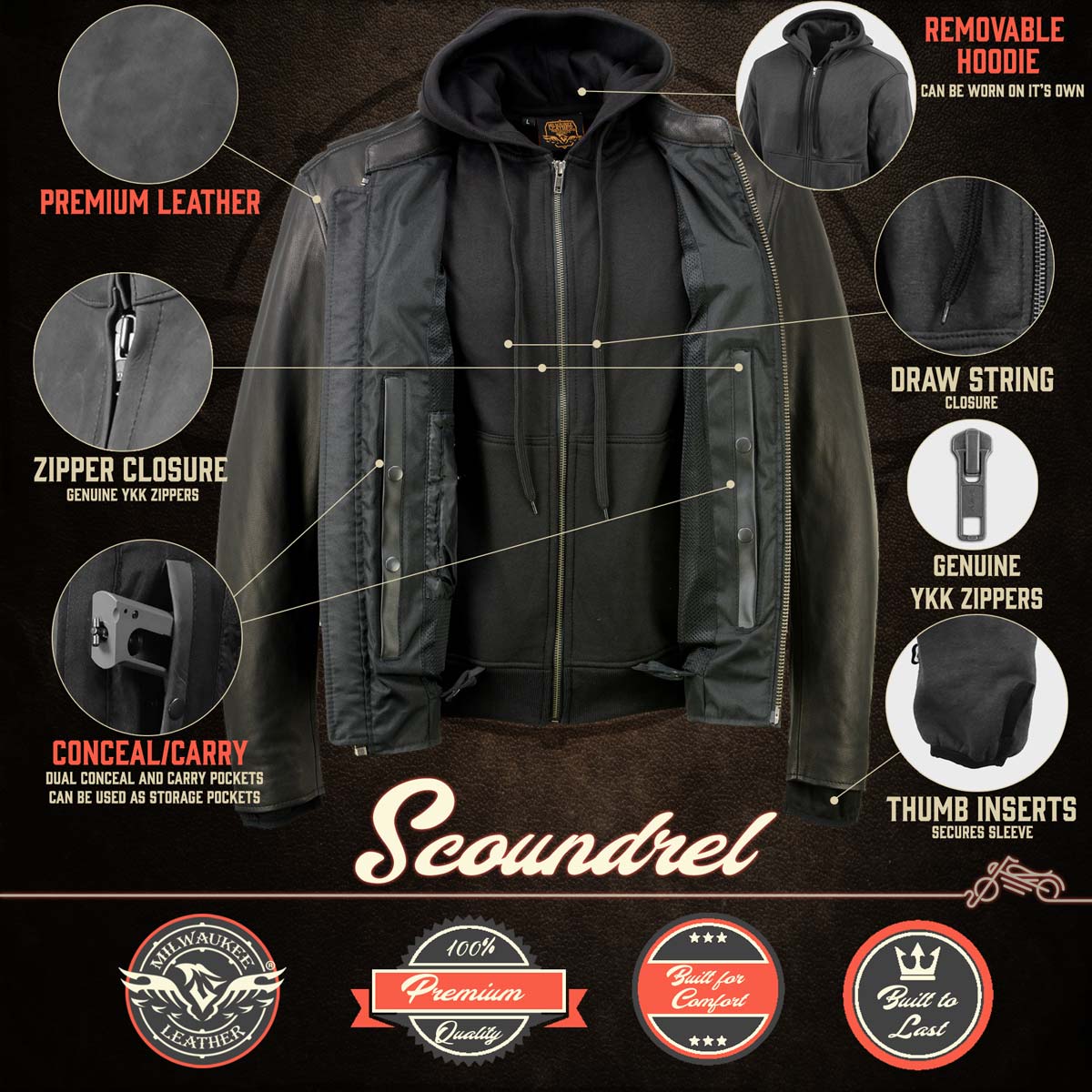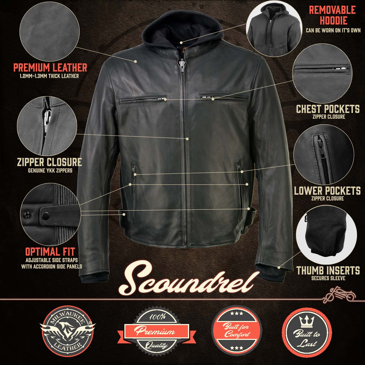 Milwaukee Leather MLM1523 Men's 'Scoundrel' Black Leather Fashion Motorcycle Riding Jacket w/ Removable Hoodie