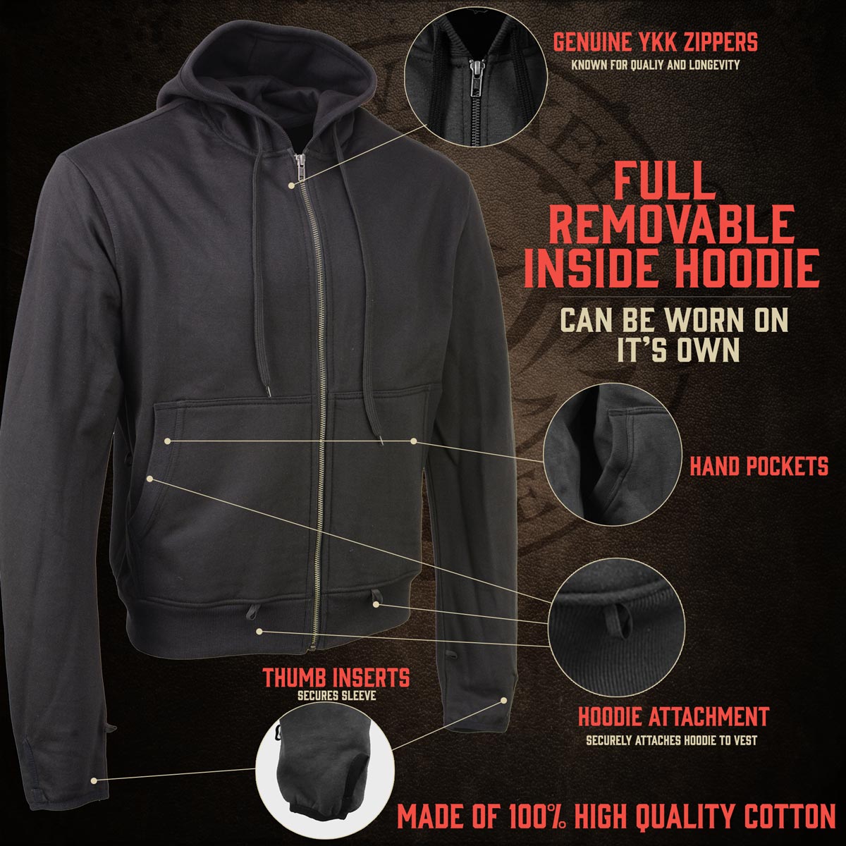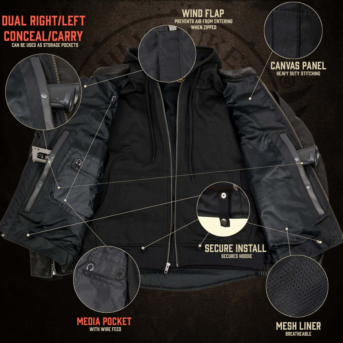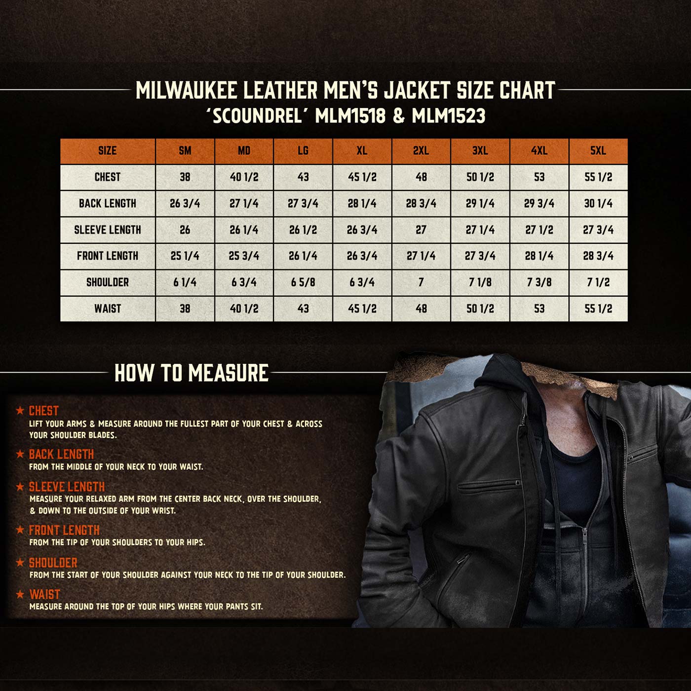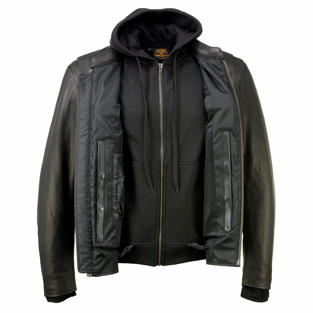 Milwaukee Leather MLM1523 Men's 'Scoundrel' Black Leather Fashion Motorcycle Riding Jacket w/ Removable Hoodie