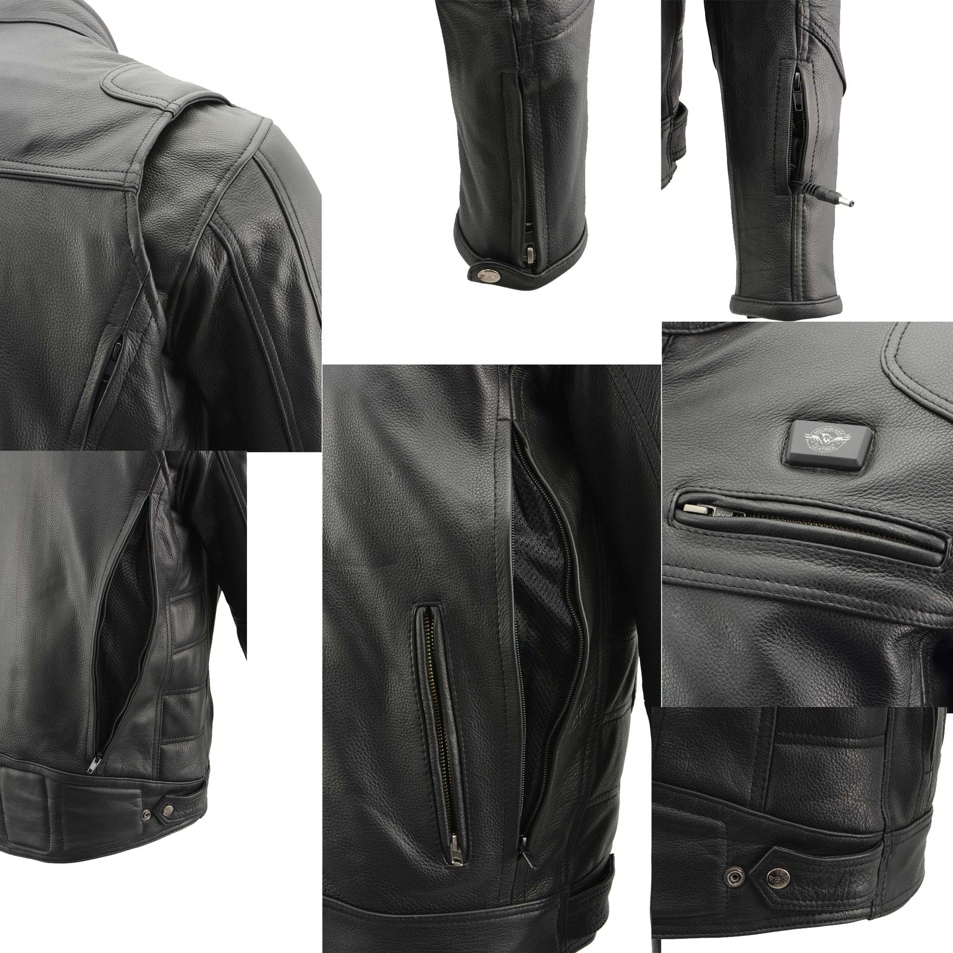 Milwaukee Leather MLM1526 Men's Black 'Stay Cool' Black Leather Sporty Motorcycle Jacket with Cool-Tec