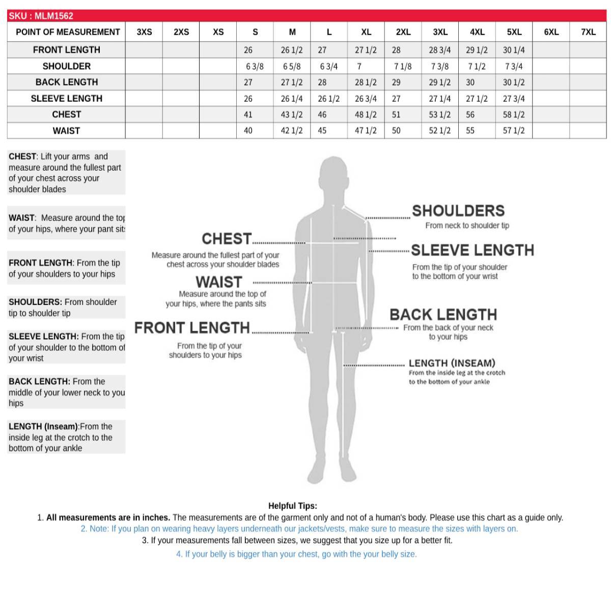 - Ladies leather can run two sizes smaller – measure your chest size!