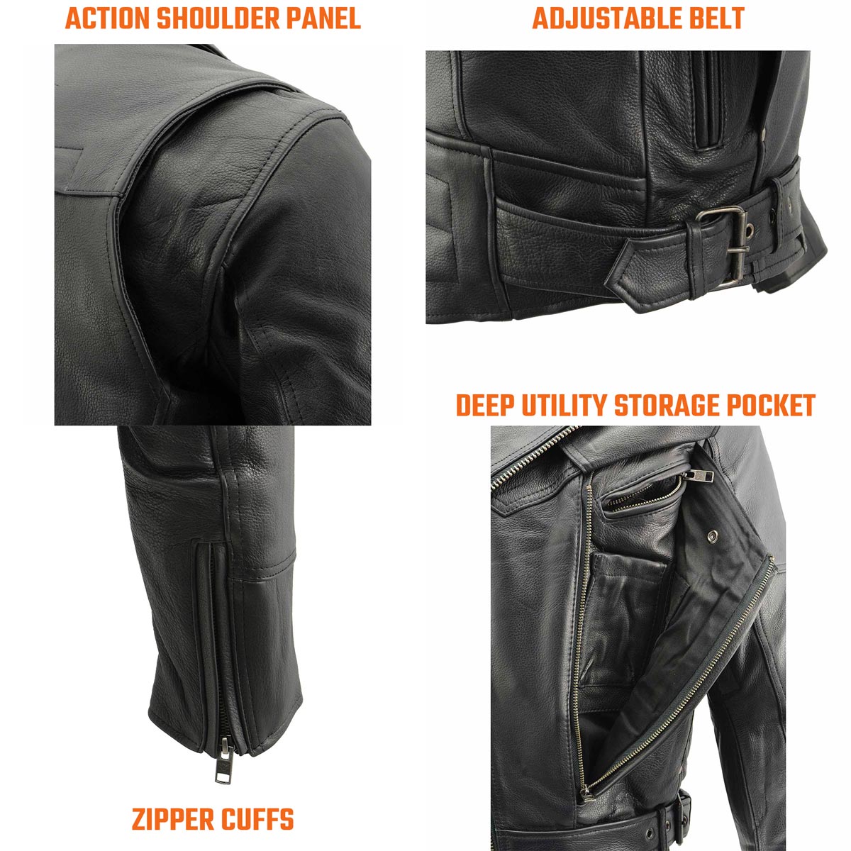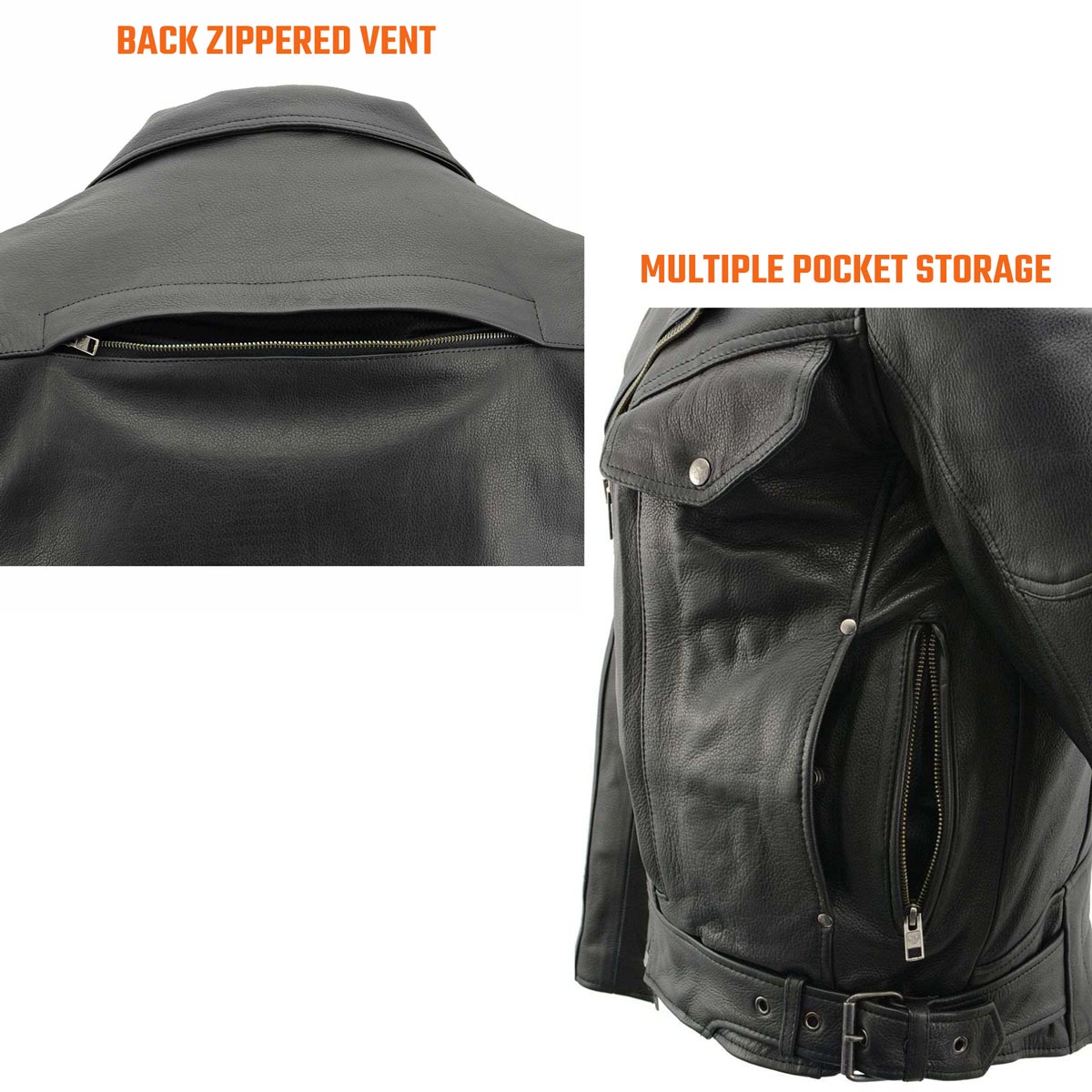 Milwaukee Leather MLM1570 Men’s Black Premium Cowhide Leather Utility Pocket Motorcycle Jacket