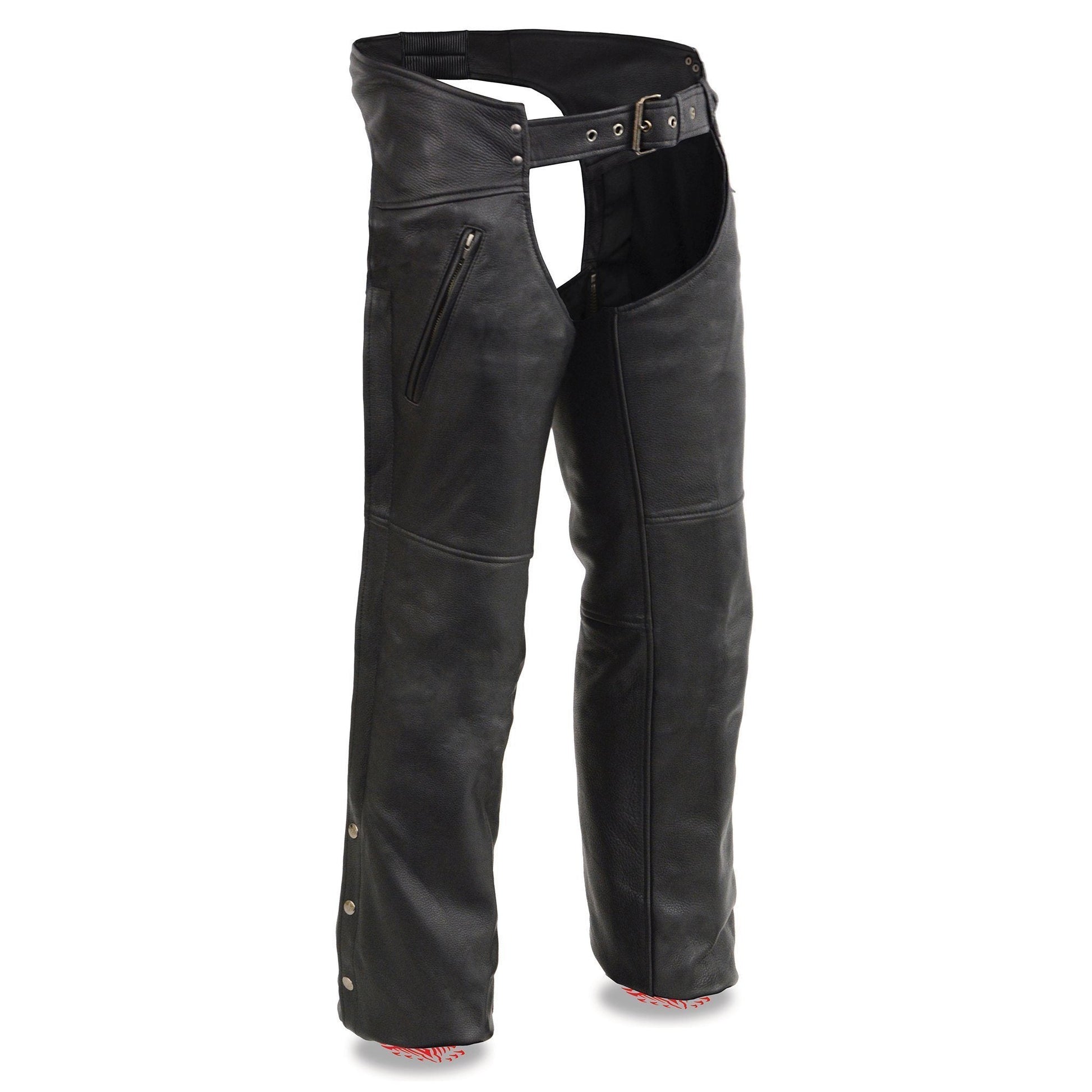 Milwaukee Leather MLM5513 Men's Black 'Heated' Motorcycle Leather Winter Chaps with Zippered Thigh Pockets
