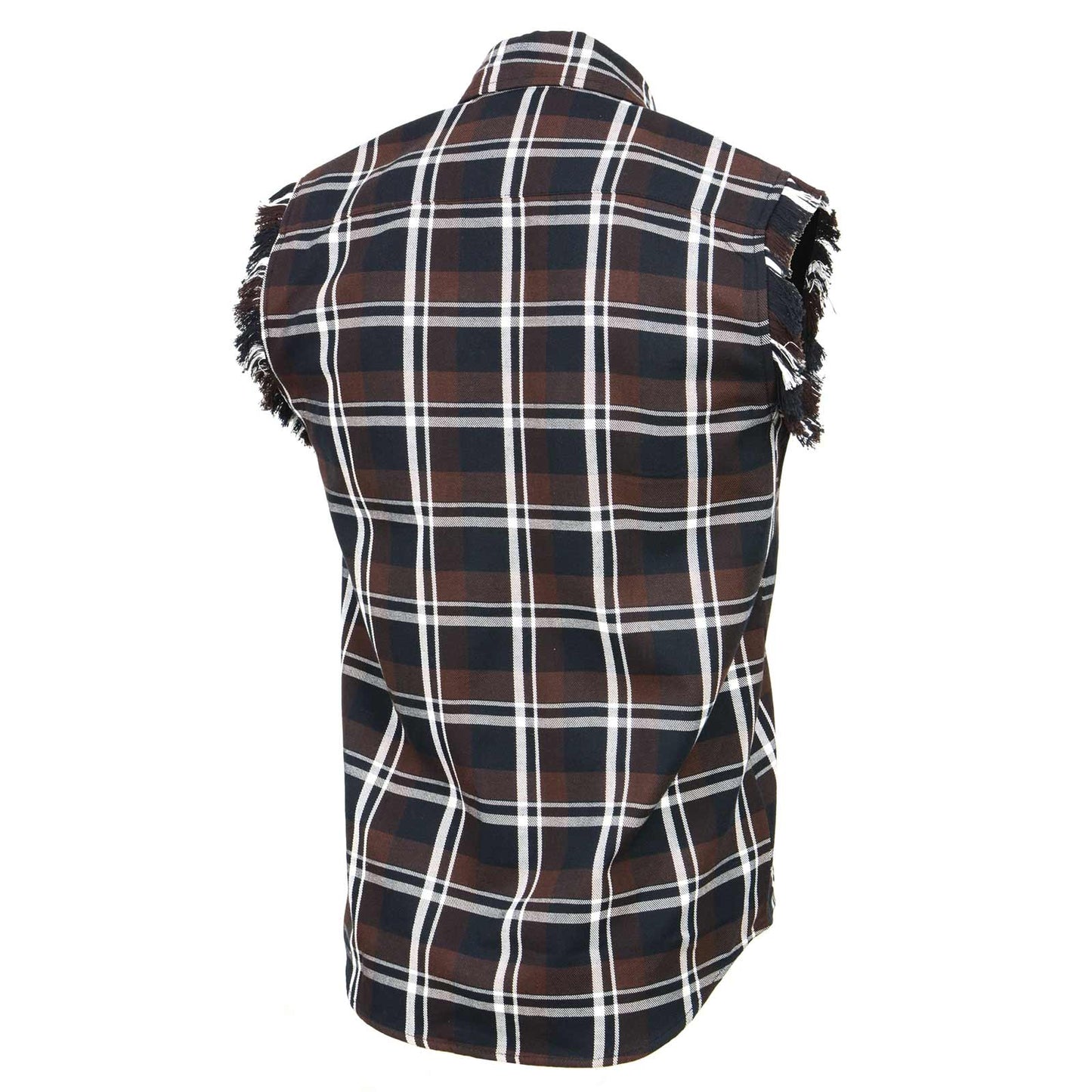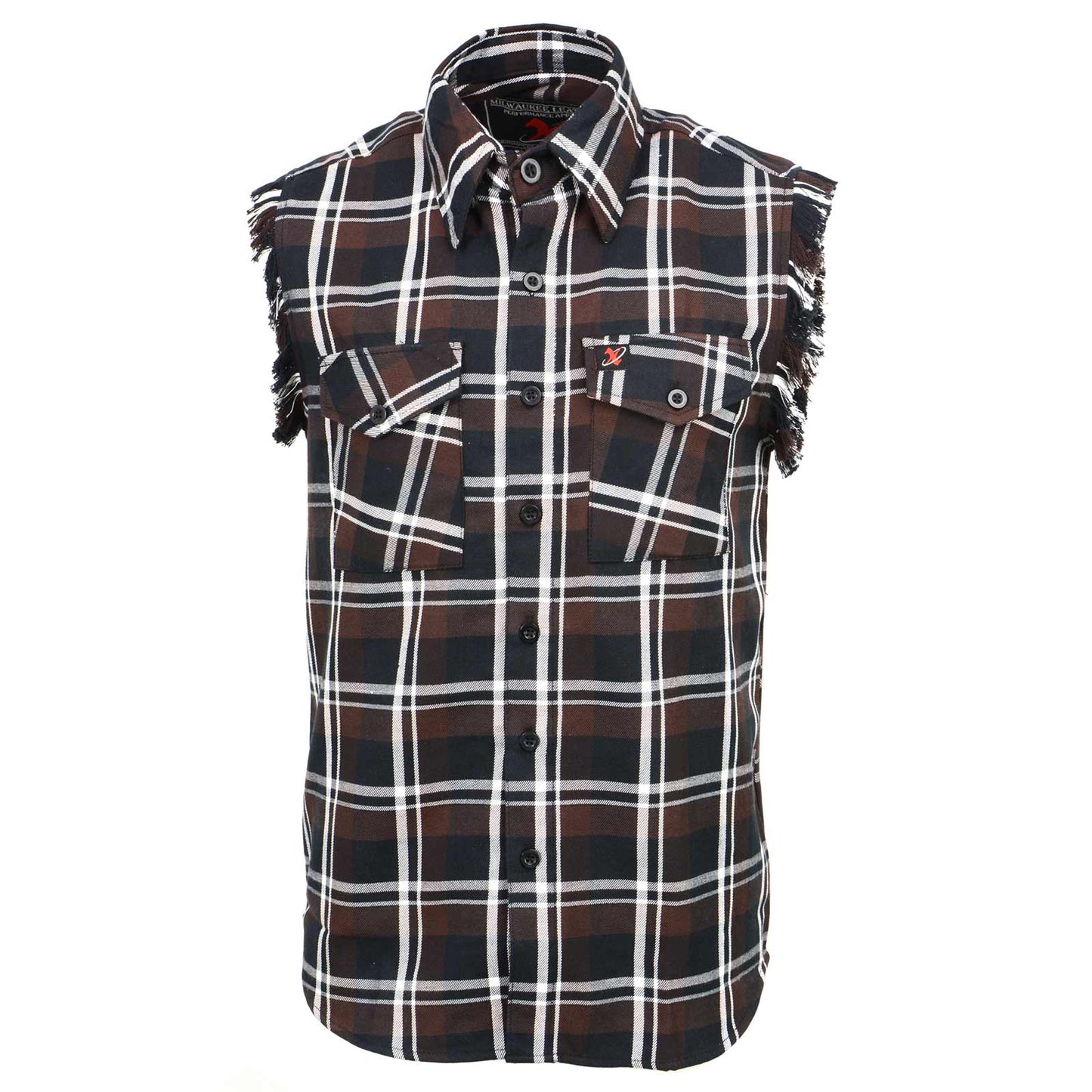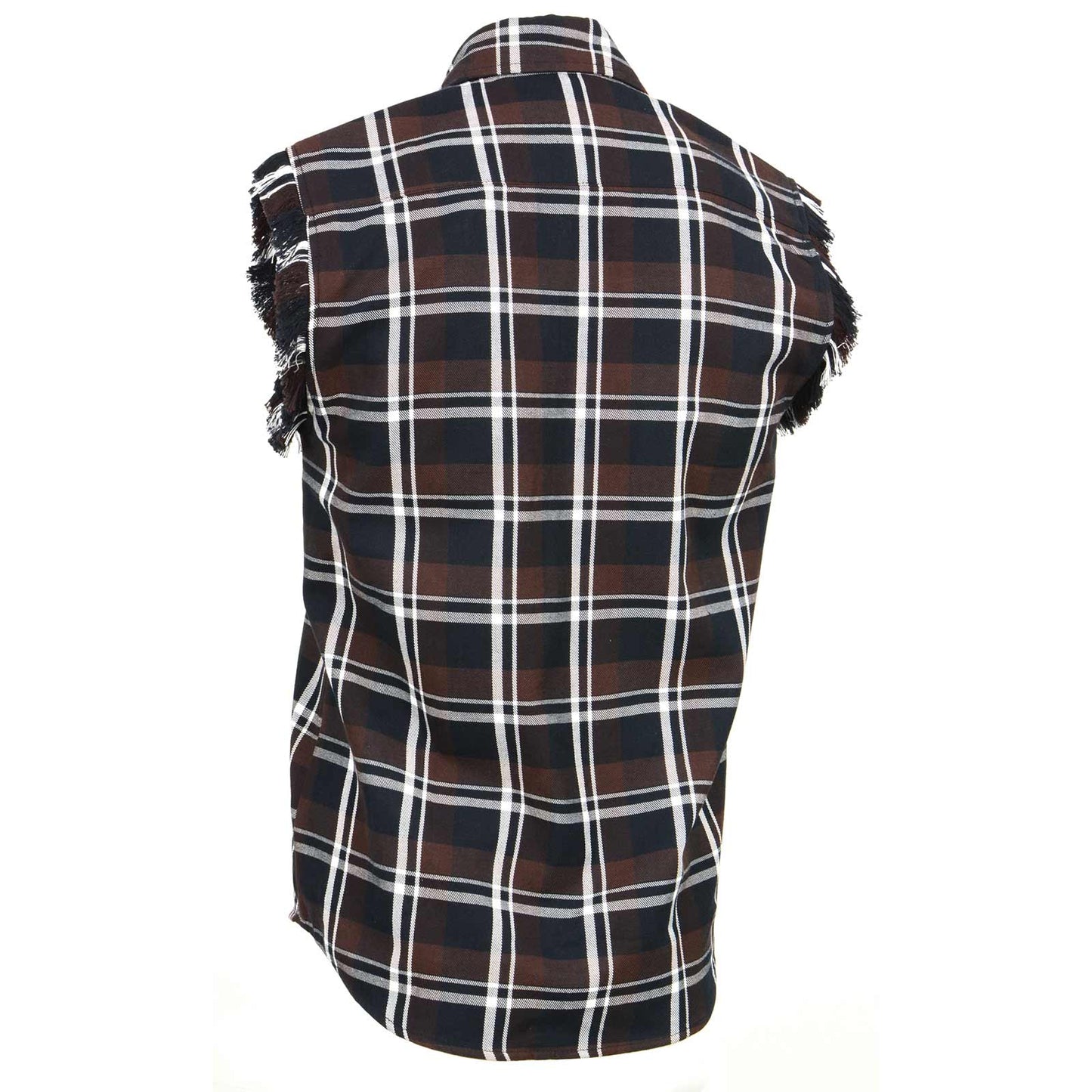 Milwaukee Leather MNG11693 Men’s Classic Black and Brown Button-Down Flannel Cut Off Frayed Sleeveless Casual Shirt