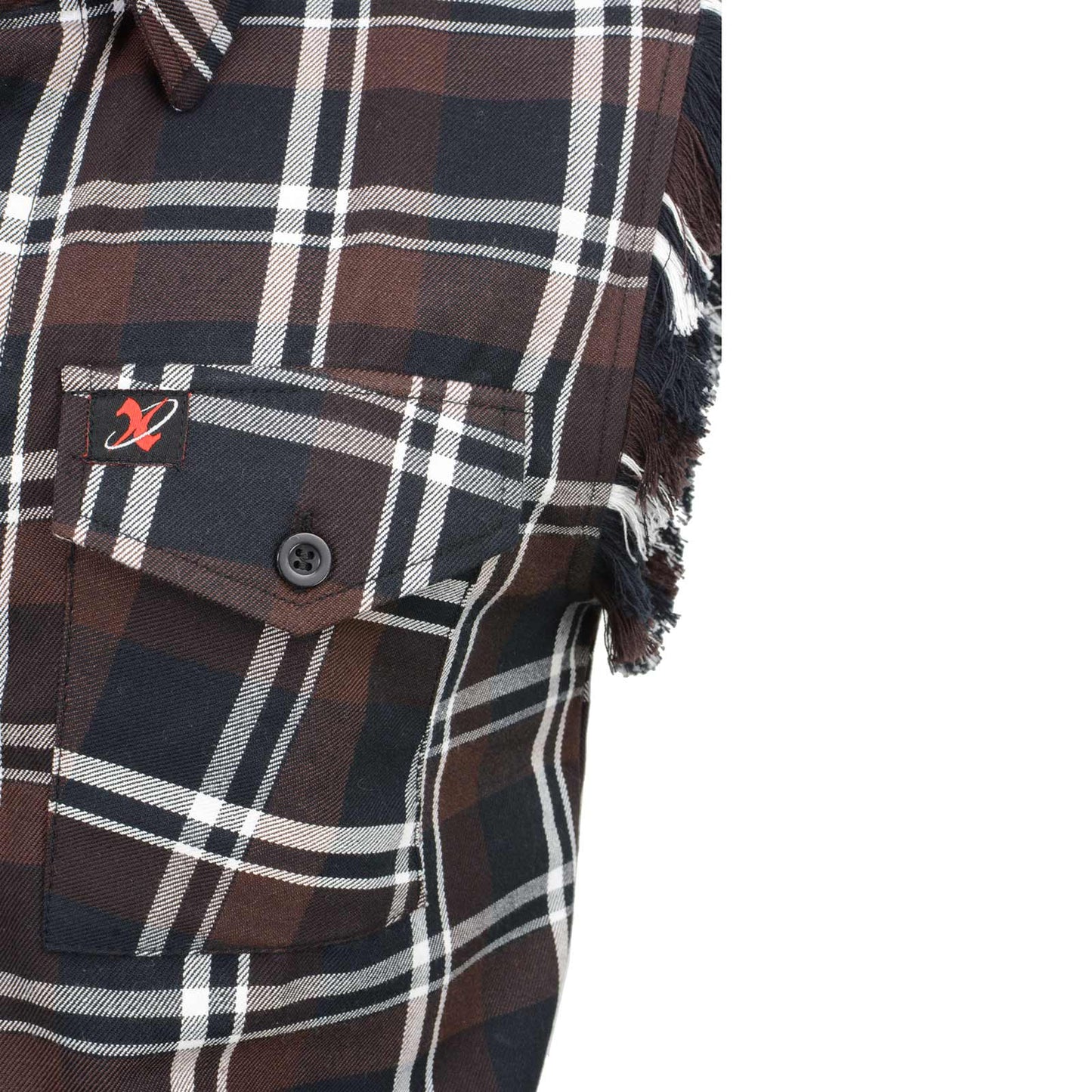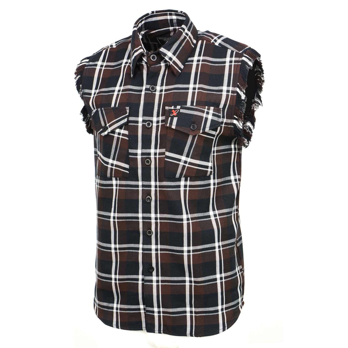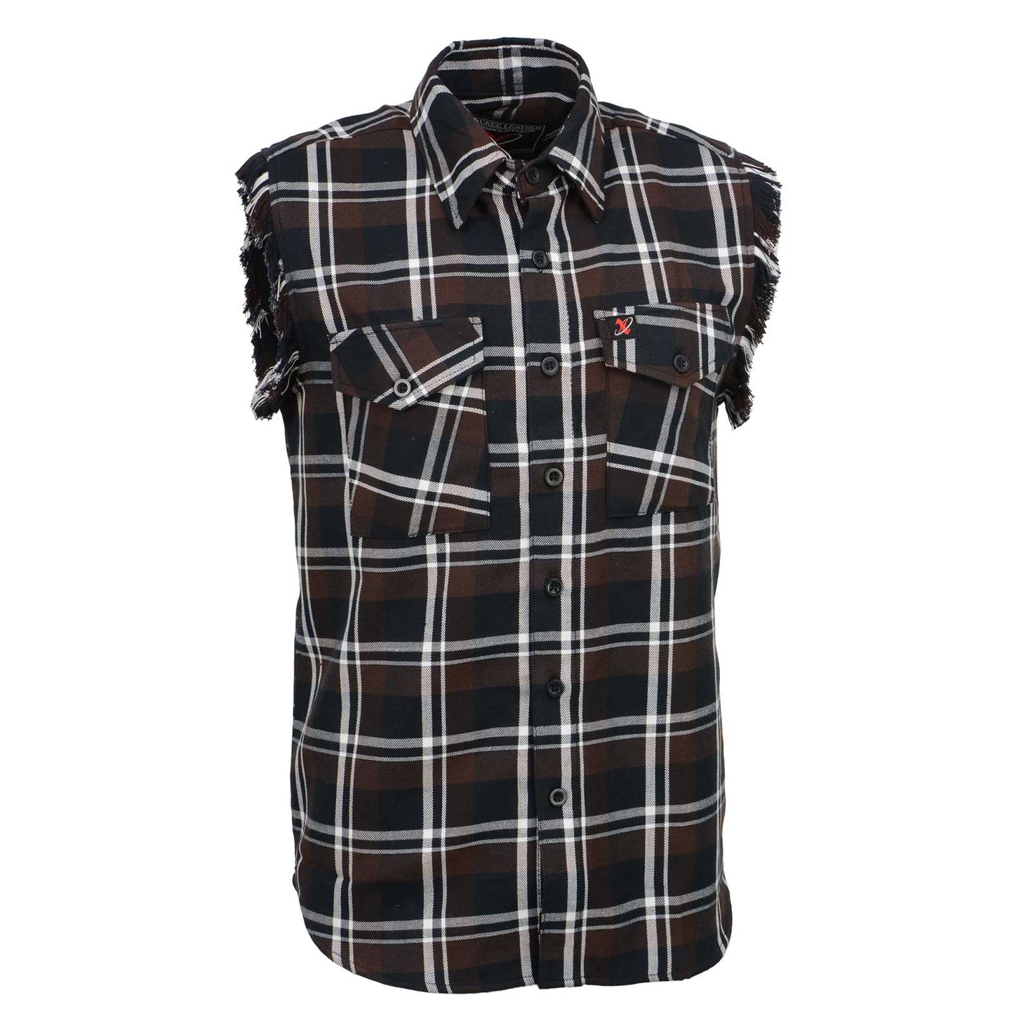 Milwaukee Leather MNG11693 Men’s Classic Black and Brown Button-Down Flannel Cut Off Frayed Sleeveless Casual Shirt