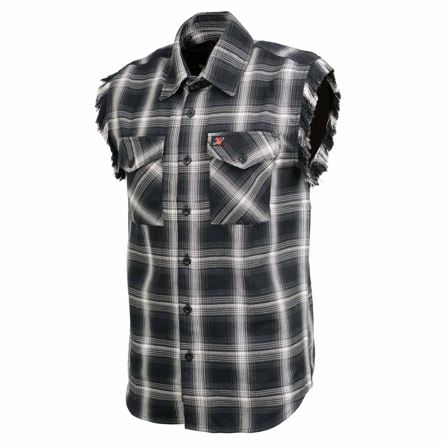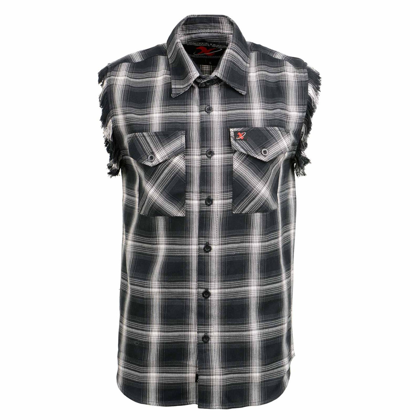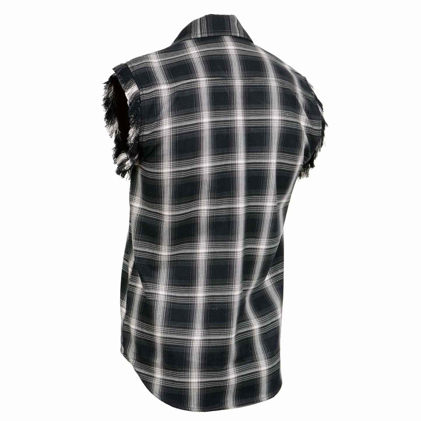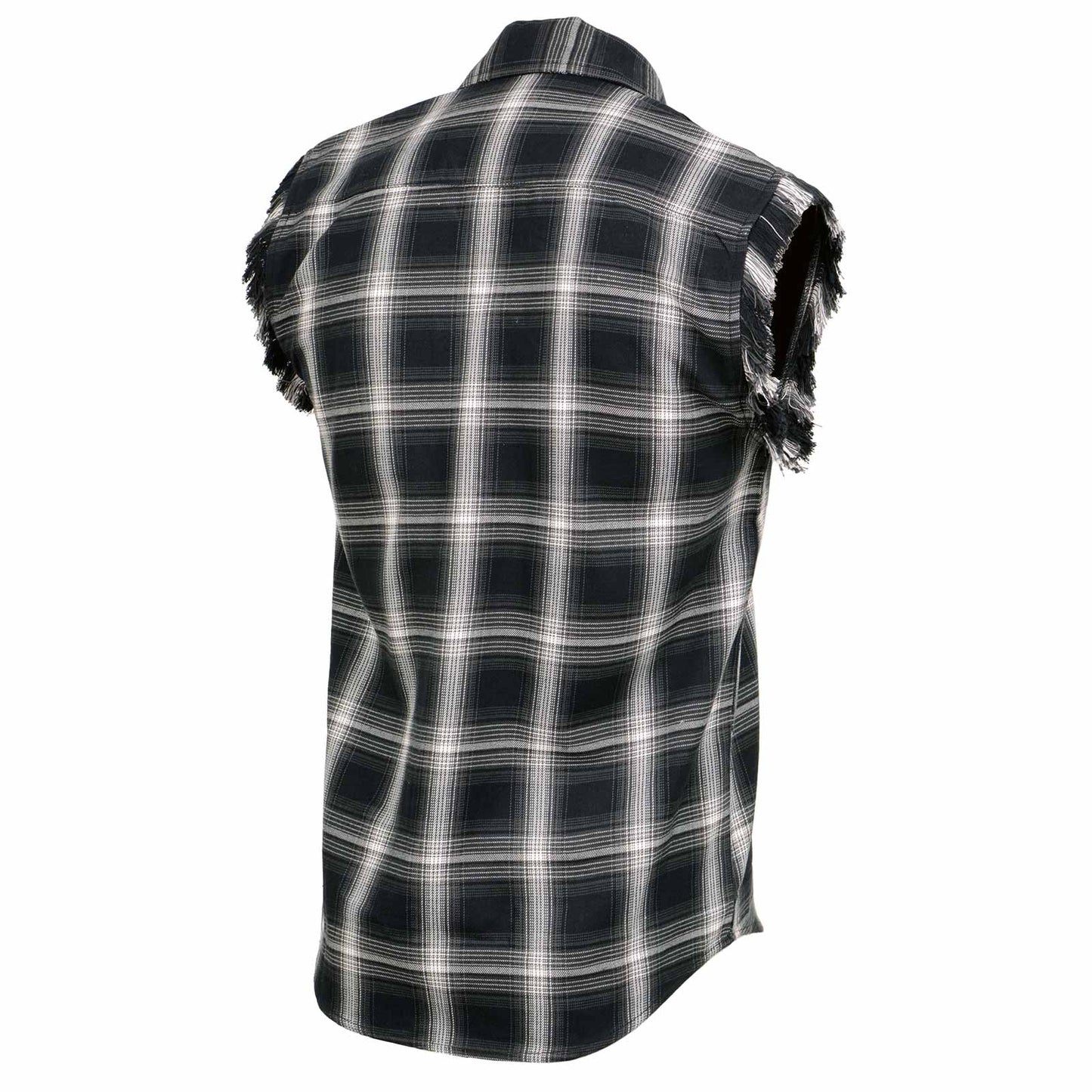 Milwaukee Leather MNG11694 Men’s Classic Black and White Button-Down Flannel Cut Off Frayed Sleeveless Casual Shirt