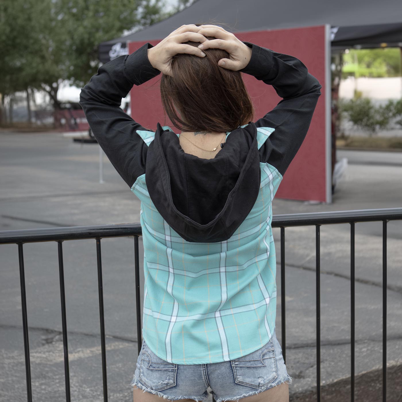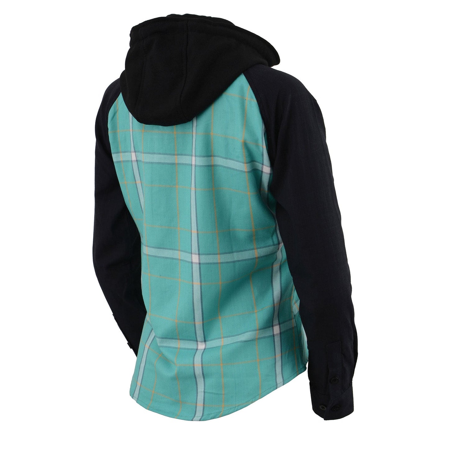 Milwaukee Leather MNG21601 Women's Casual Black and Teal Long Sleeve Cotton Flannel Shirt with Hoodie