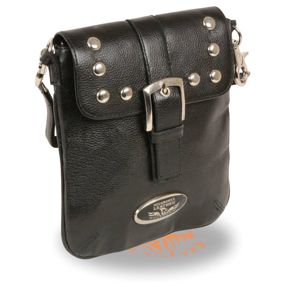 Milwaukee Leather MP8805 Women's Black Small Leather Studded Shoulder Bag