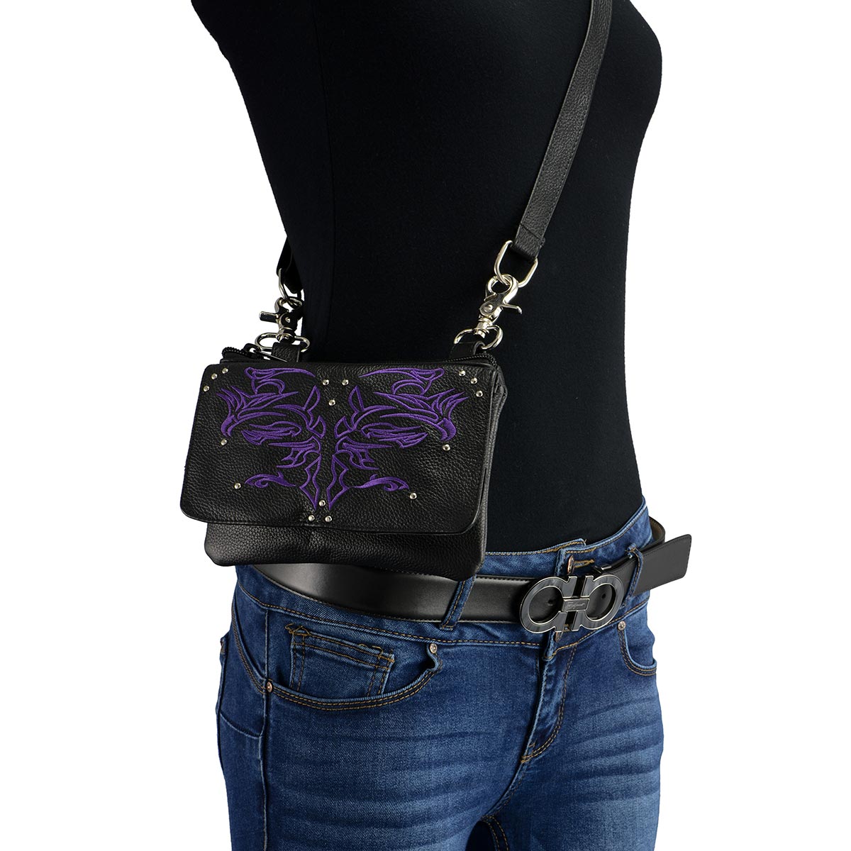 Milwaukee Leather MP8852 Women's Black and Purple Leather Multi Pocket Belt Bag