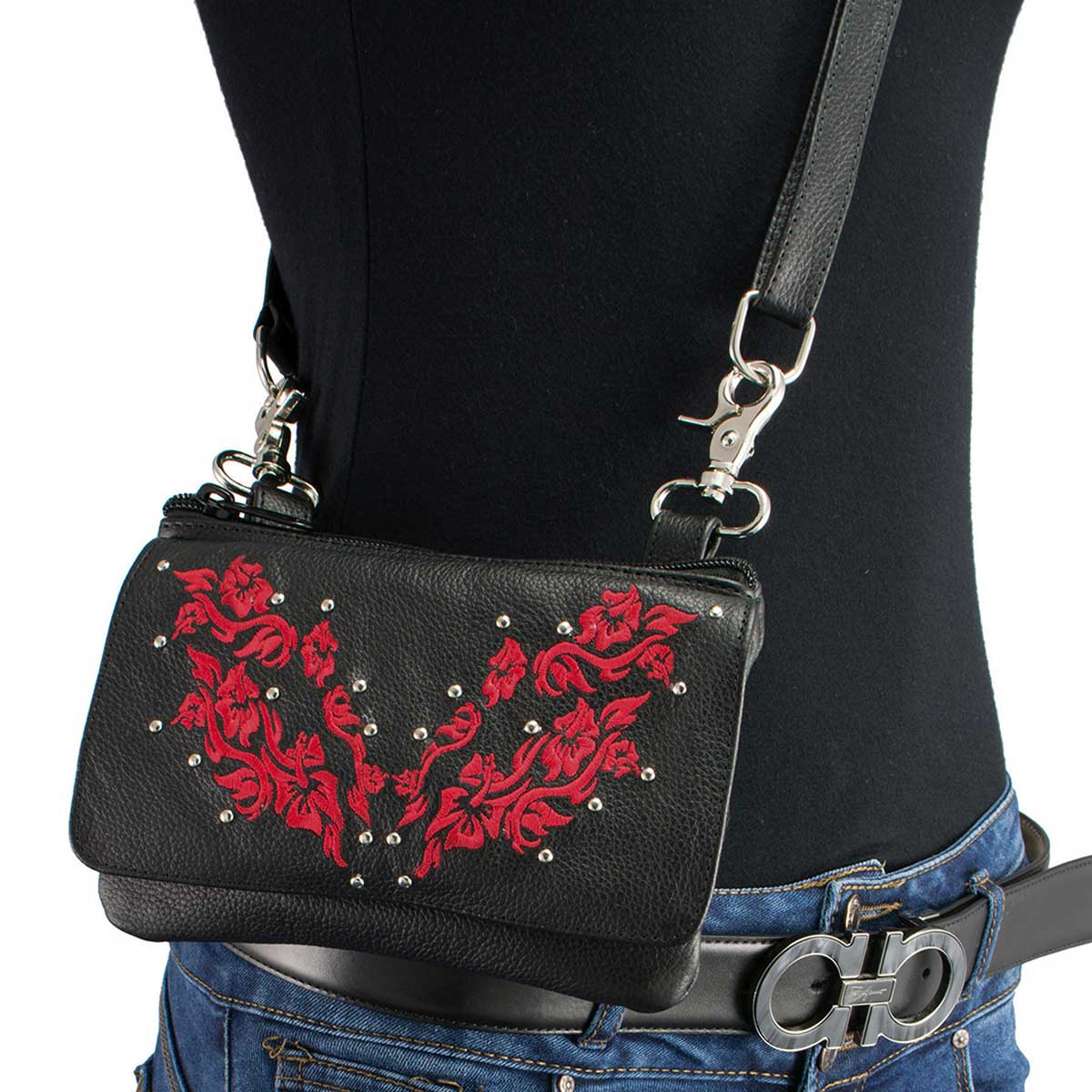 Milwaukee Leather MP8853 Women's 'Flower' Black and Red Leather Multi Pocket Belt Bag