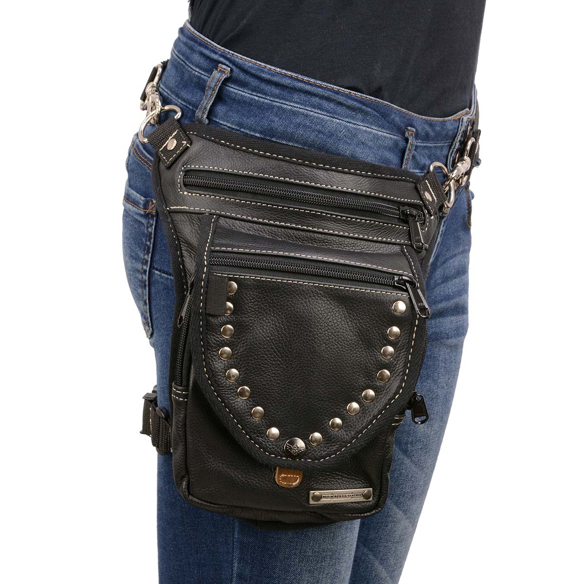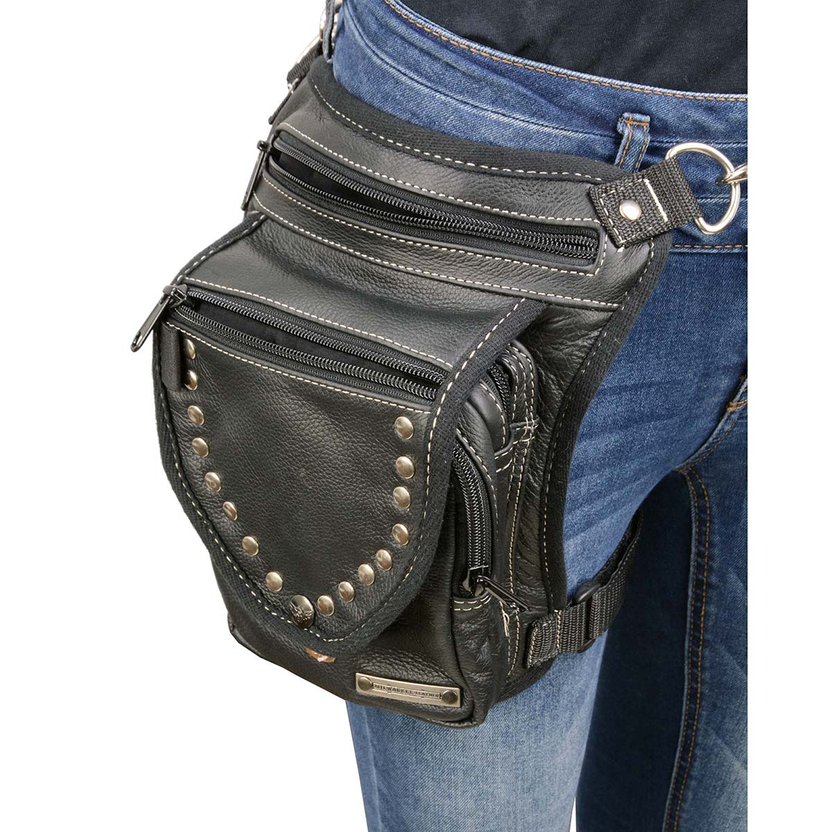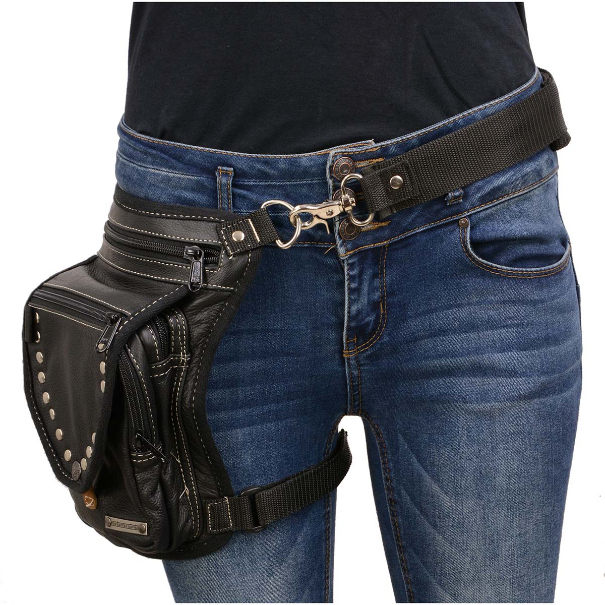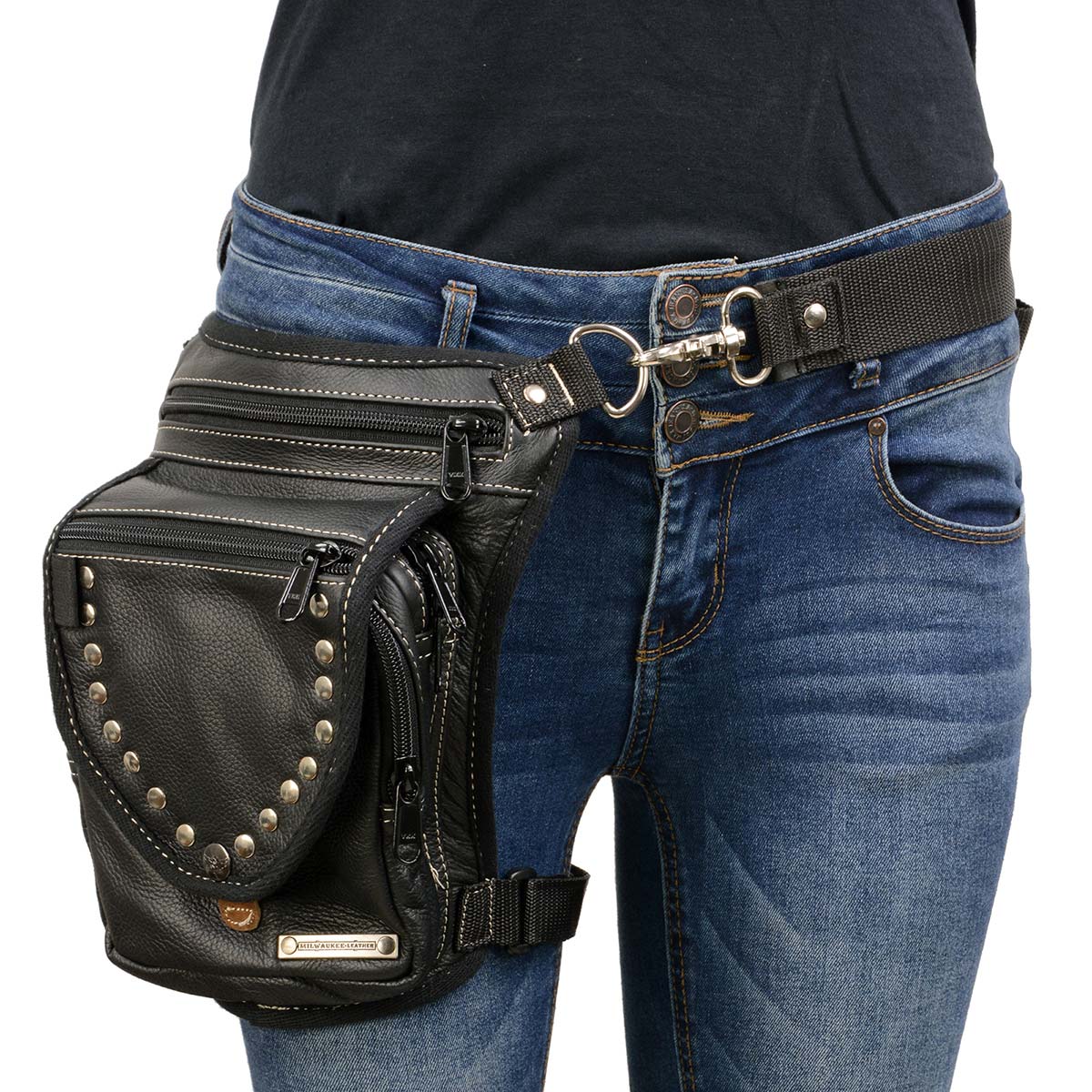 Milwaukee Leather MP8882 Black Conceal and Carry Leather Thigh Bag with Waist Belt