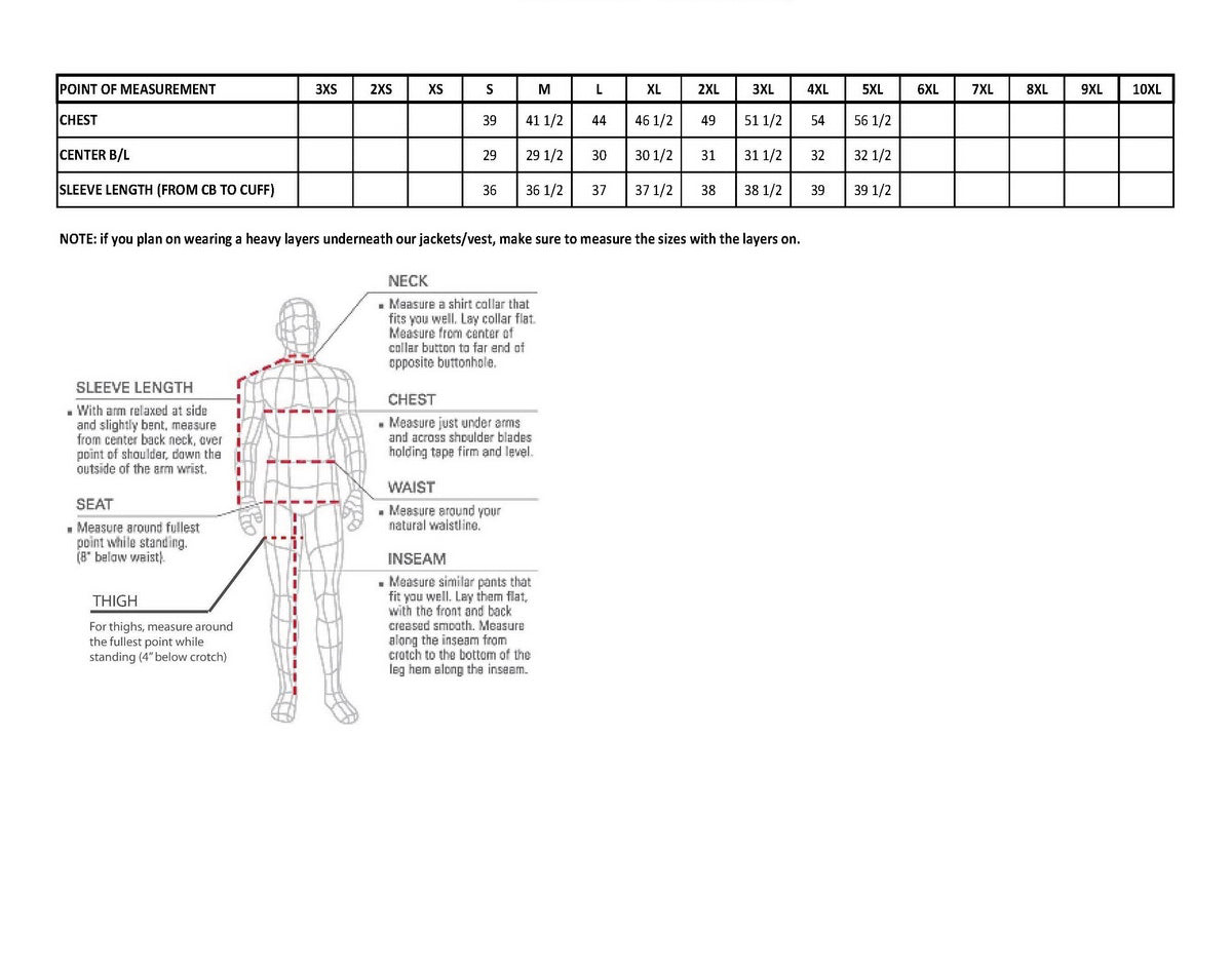 • Ladies leather can run two sizes smaller – measure your chest size!