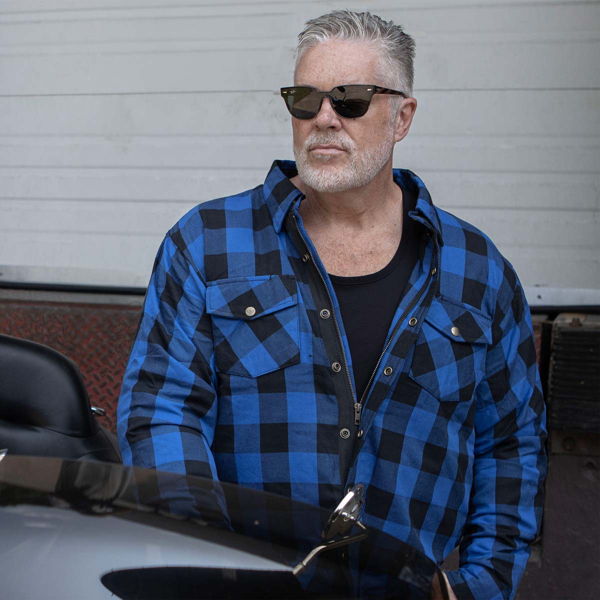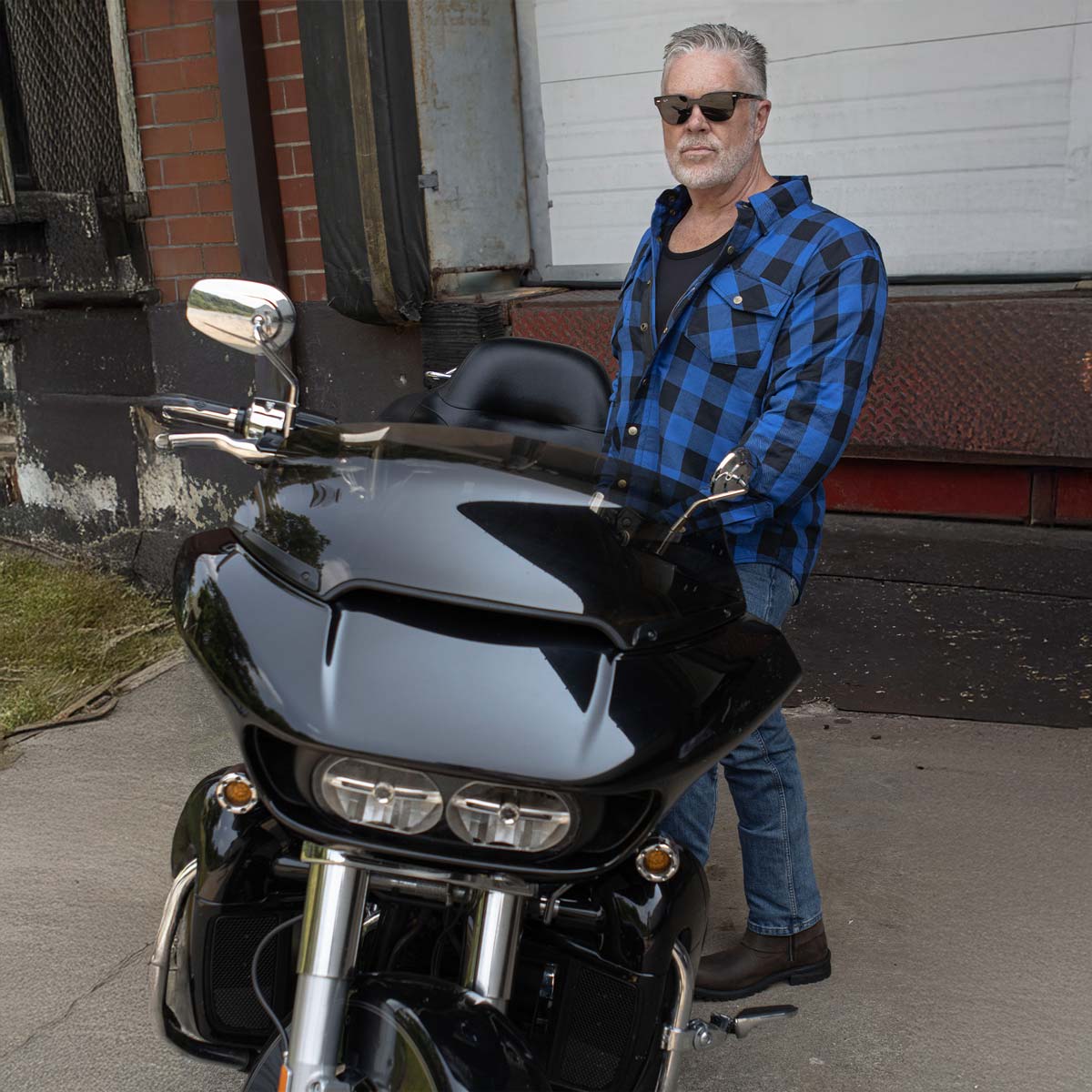 Milwaukee Leather Men's Plaid Flannel Blue Biker Shirt with CE Approved Armor Reinforced w/Aramid Fiber MPM1634