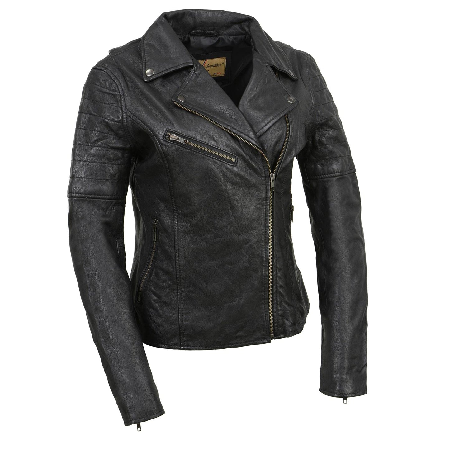 Milwaukee Leather Black Vintage Motorcycle Inspired Vegan Tan Fashion Leather Jacket for Women SFL2812
