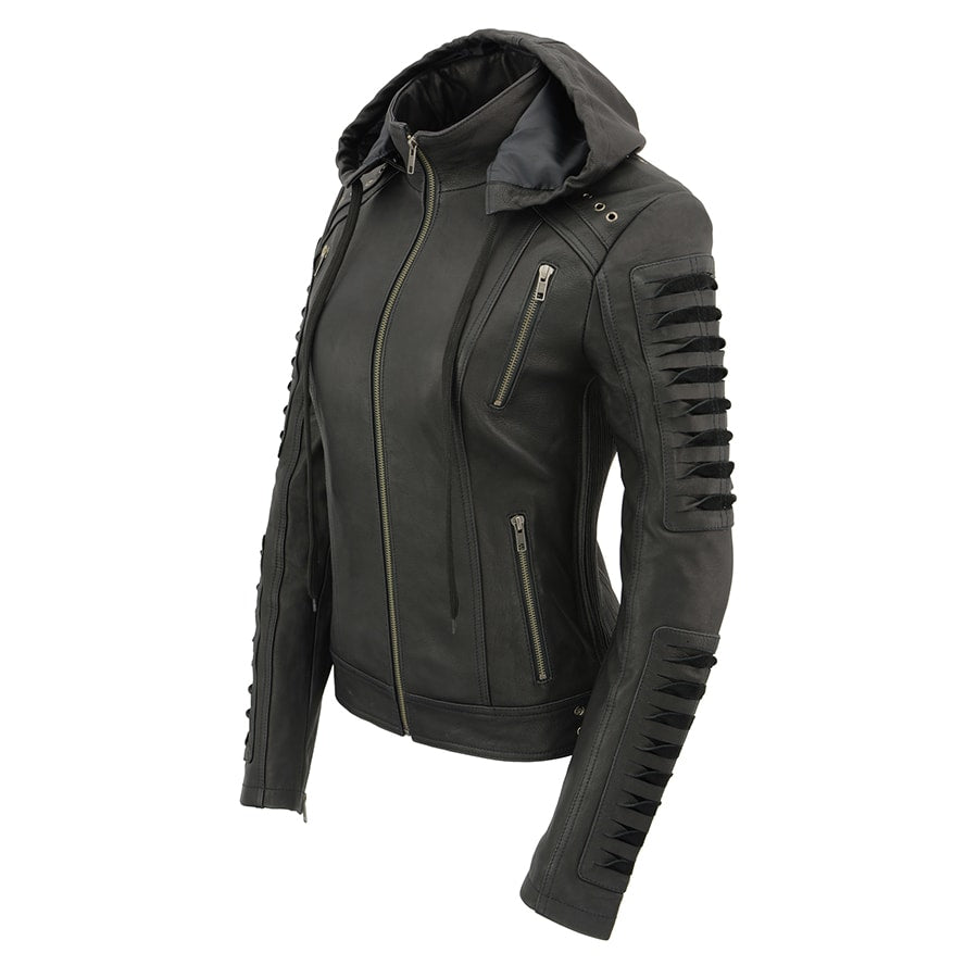 Milwaukee Leather SFL2865 Women's Black Scuba Style Fashion Casual Leather Jacket with Hoodie