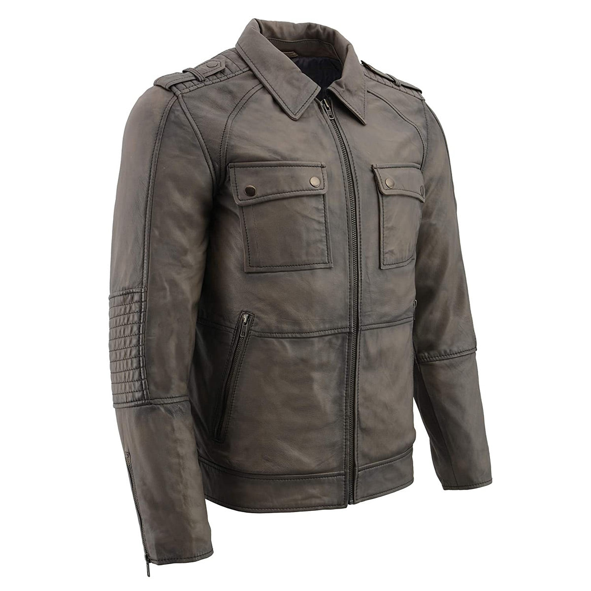 Milwaukee Leather SFM1810 Men's Anthracite Patch Pocket Lambskin Leather Jacket