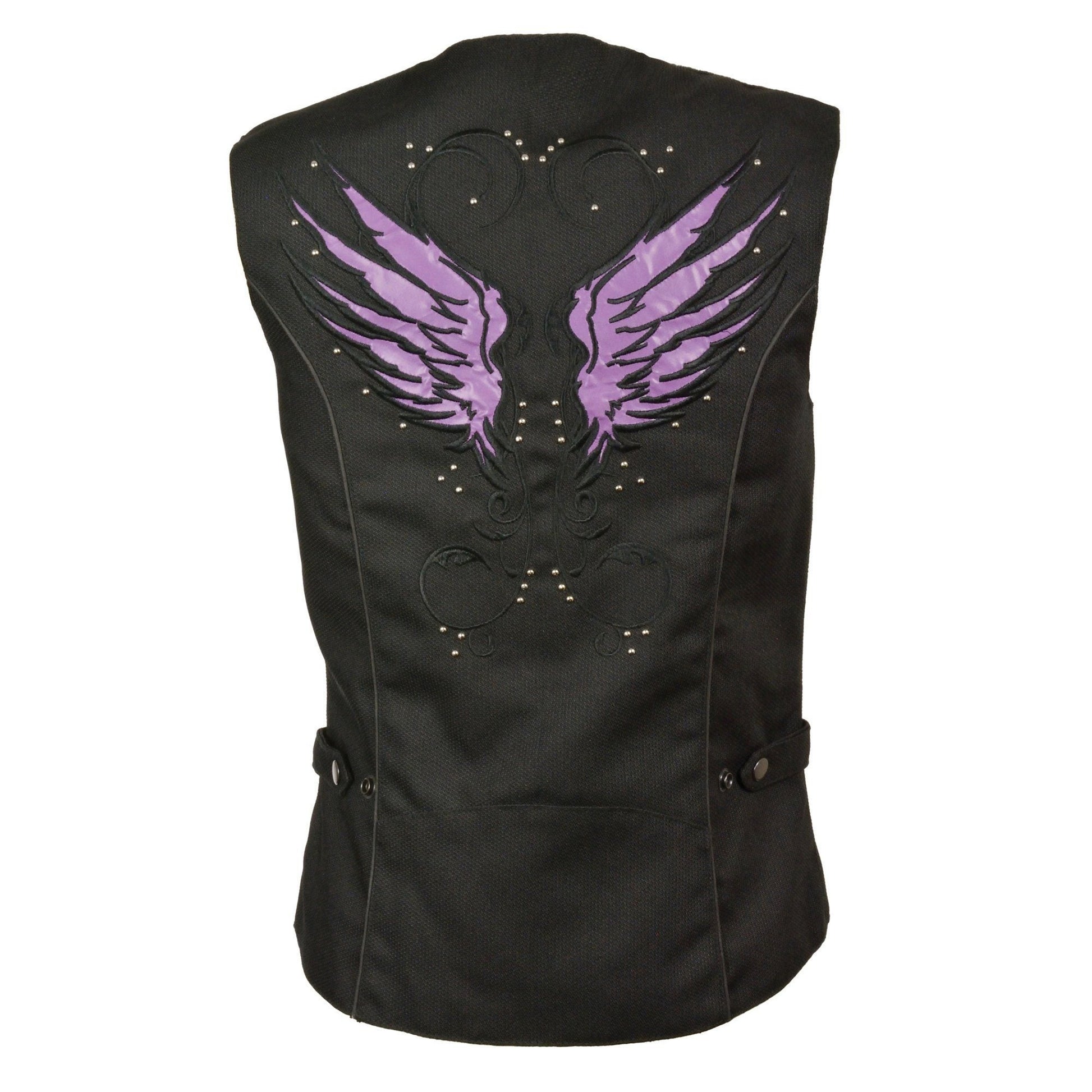 Milwaukee Leather SH1955 Ladies Black and Purple Textile Vest with Wing Embroidery