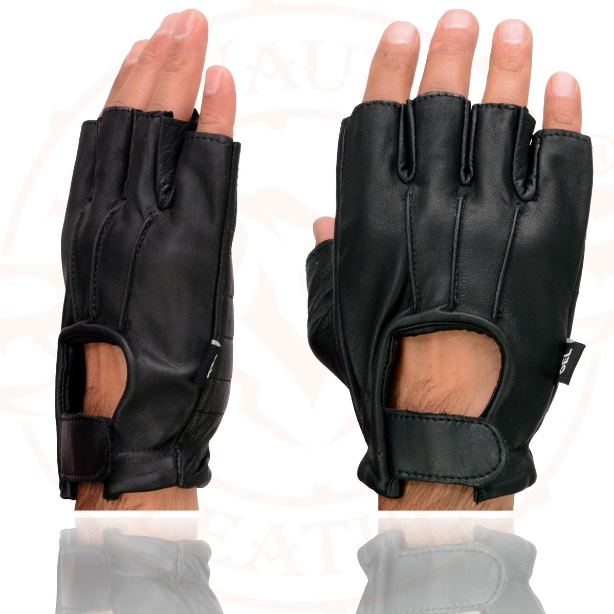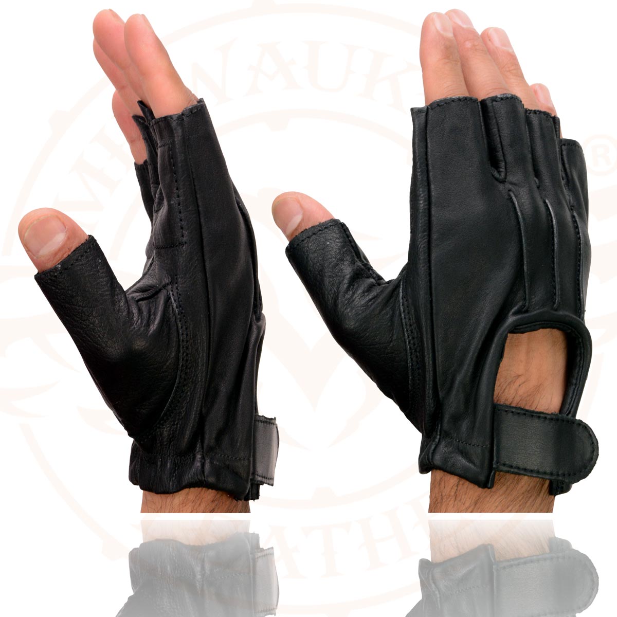 Milwaukee Leather SH206Gloves Men's Black Welted Leather Fingerless Gloves with Gel Palm