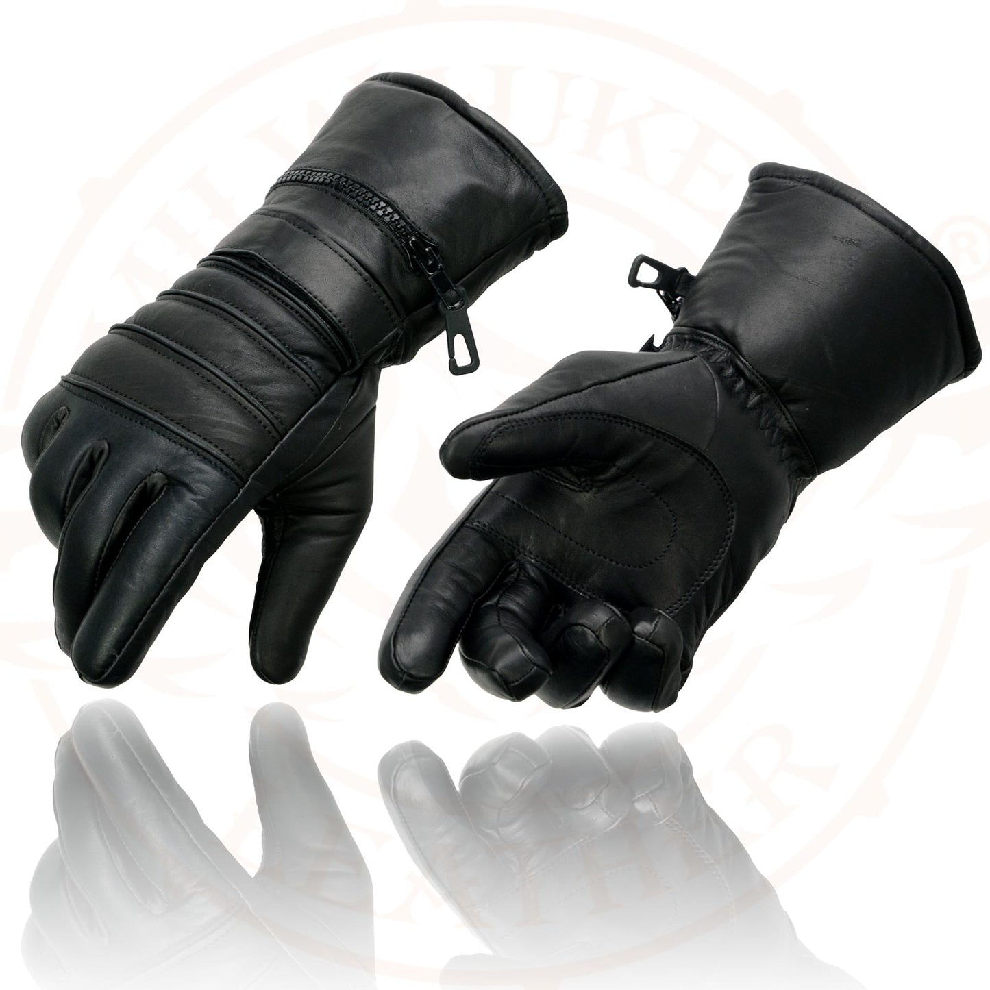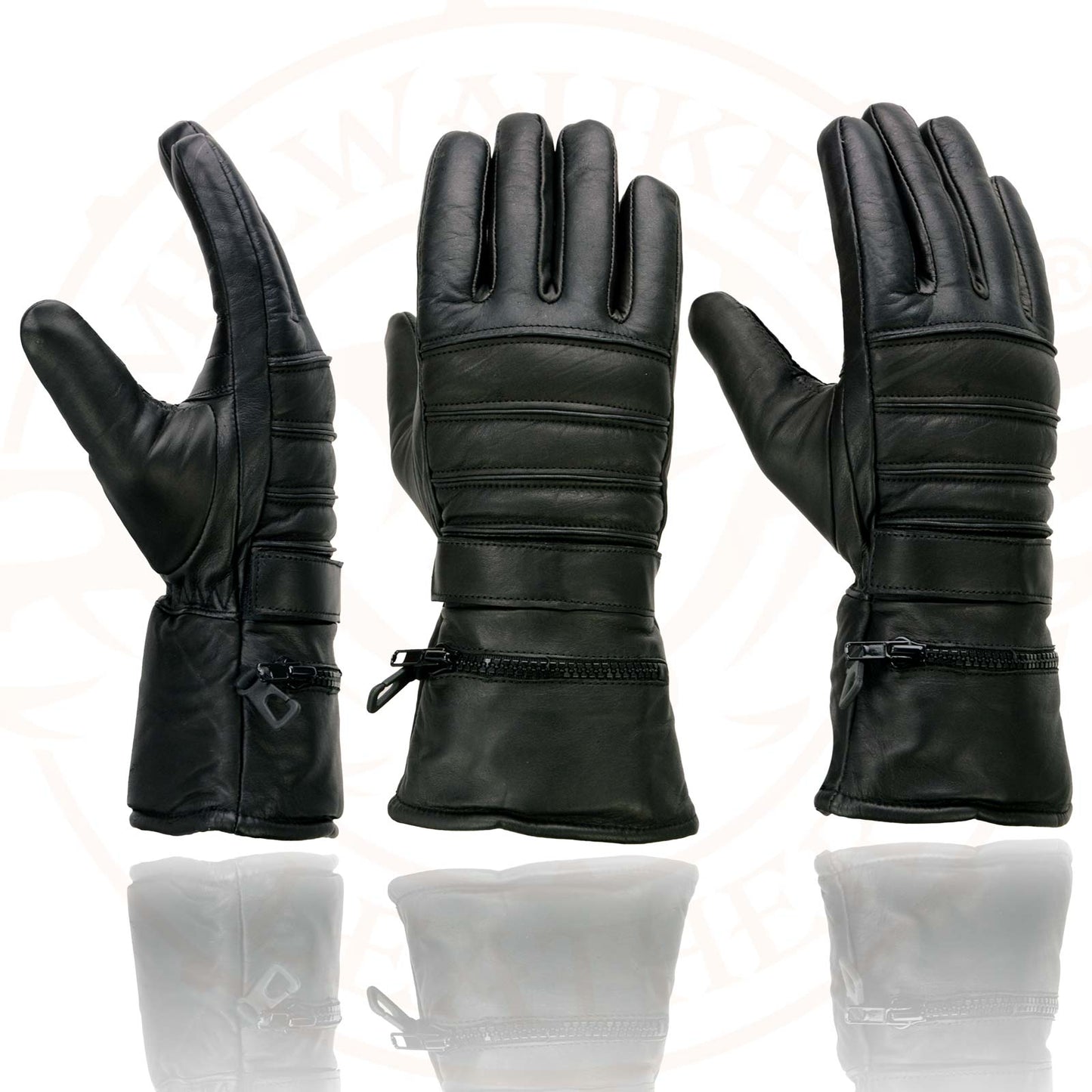 - Motorcycle Leather Apparel: Experience the quality and craftsmanship of Milwaukee leather. We are the top manufacturer of motorcycle leather apparel our men's gauntlet leather gloves are also suitable for teens women’s and various activities such as atv, sport, cycling, scooter, outdoor work, snowmobile, handlebar, street & dirt bike hiking, camping, skiing, snow removal worker and natural mobility, perfect for powersports enthusiasts. Milwaukee Leather - Once You Have It, You Love It.