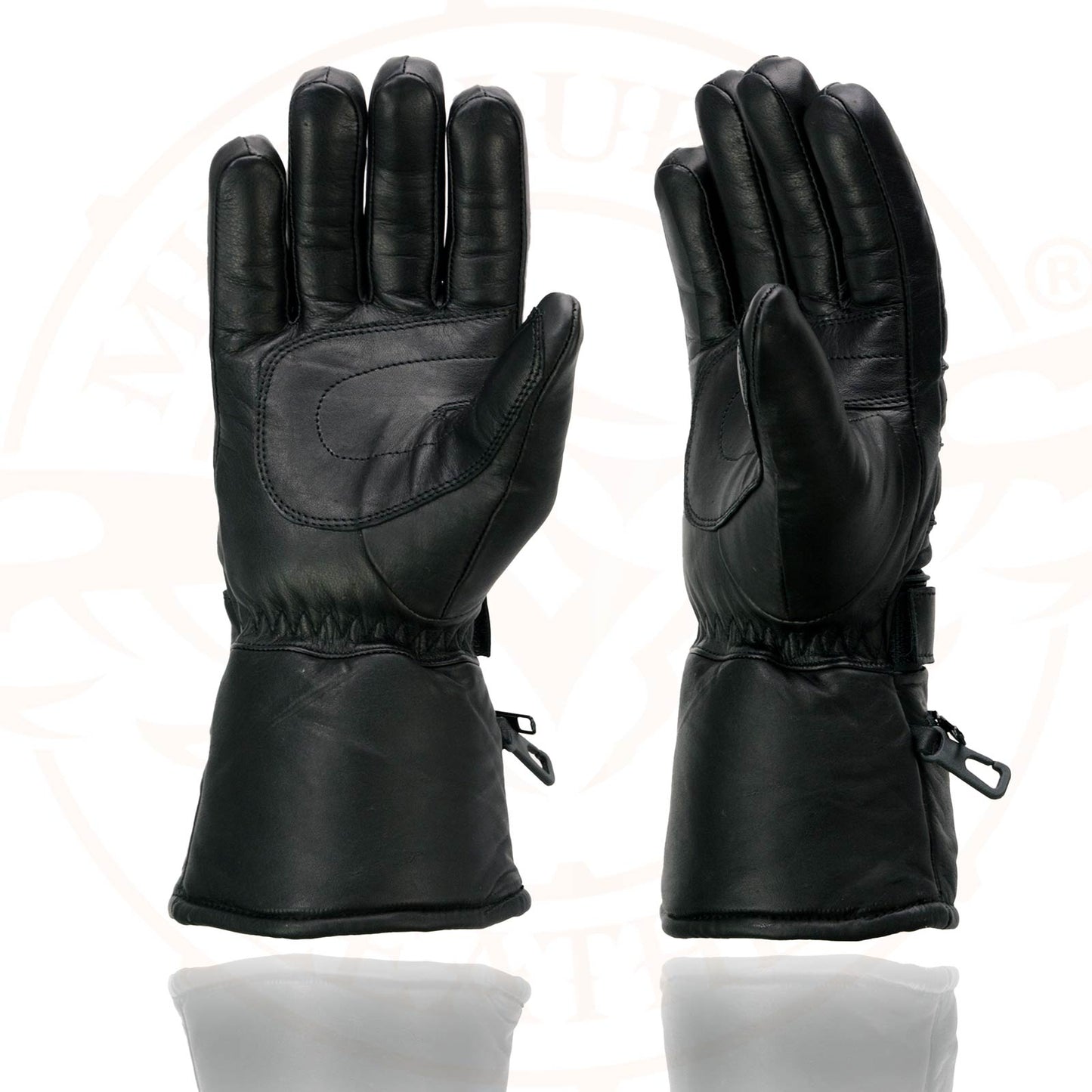 Milwaukee Leather SH232 Men's Black Leather Warm Lining Gauntlet Motorcycle Hand Gloves W/ Rain Mitten and Adjustable Strap