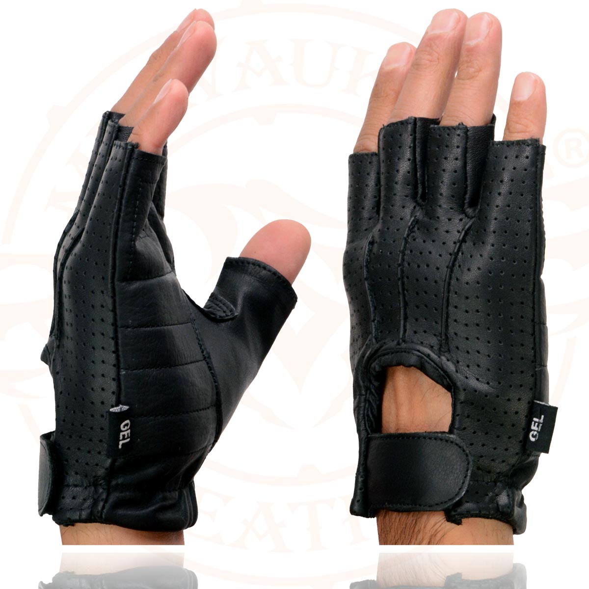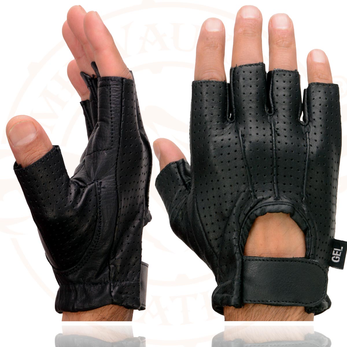 Milwaukee Leather SH357 Men's Black Leather Gel Padded Palm Fingerless Motorcycle Hand Gloves W/ ‘Welted Perforated Leather’