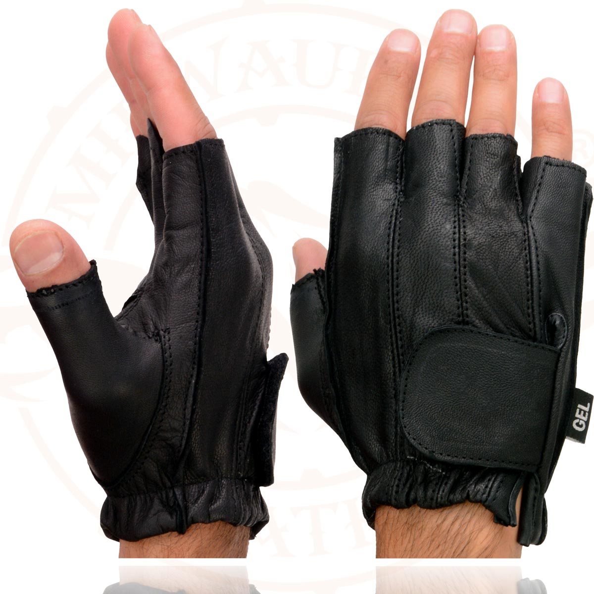 Milwaukee Leather SH442 Men's Black Leather Gel Padded Palm Fingerless Motorcycle Hand Gloves W/ Soft ‘Genuine Leather’