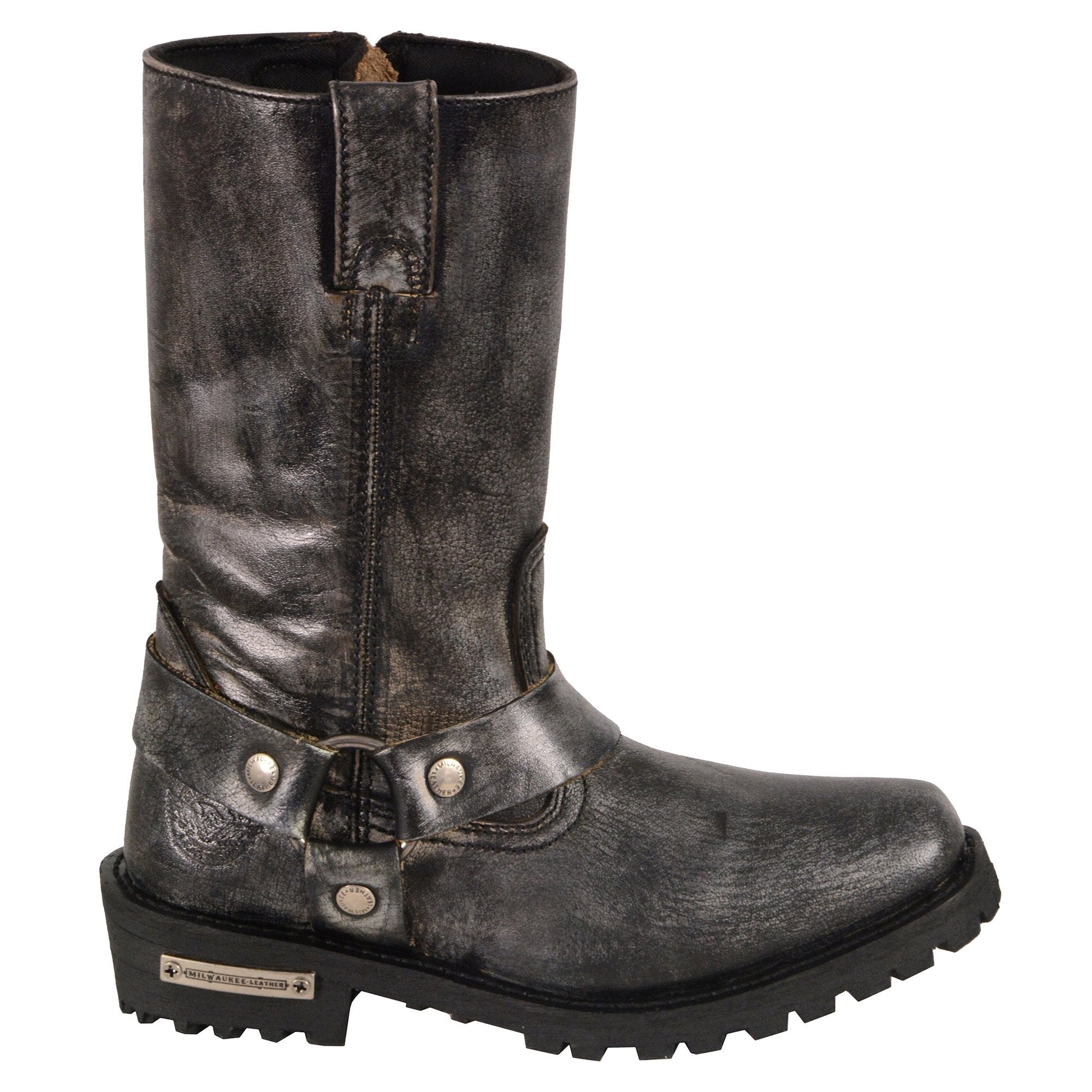 Milwaukee Leather Women's 11-Inch Distressed Grey Classic Harness Square Toe Leather Boots MBL9362