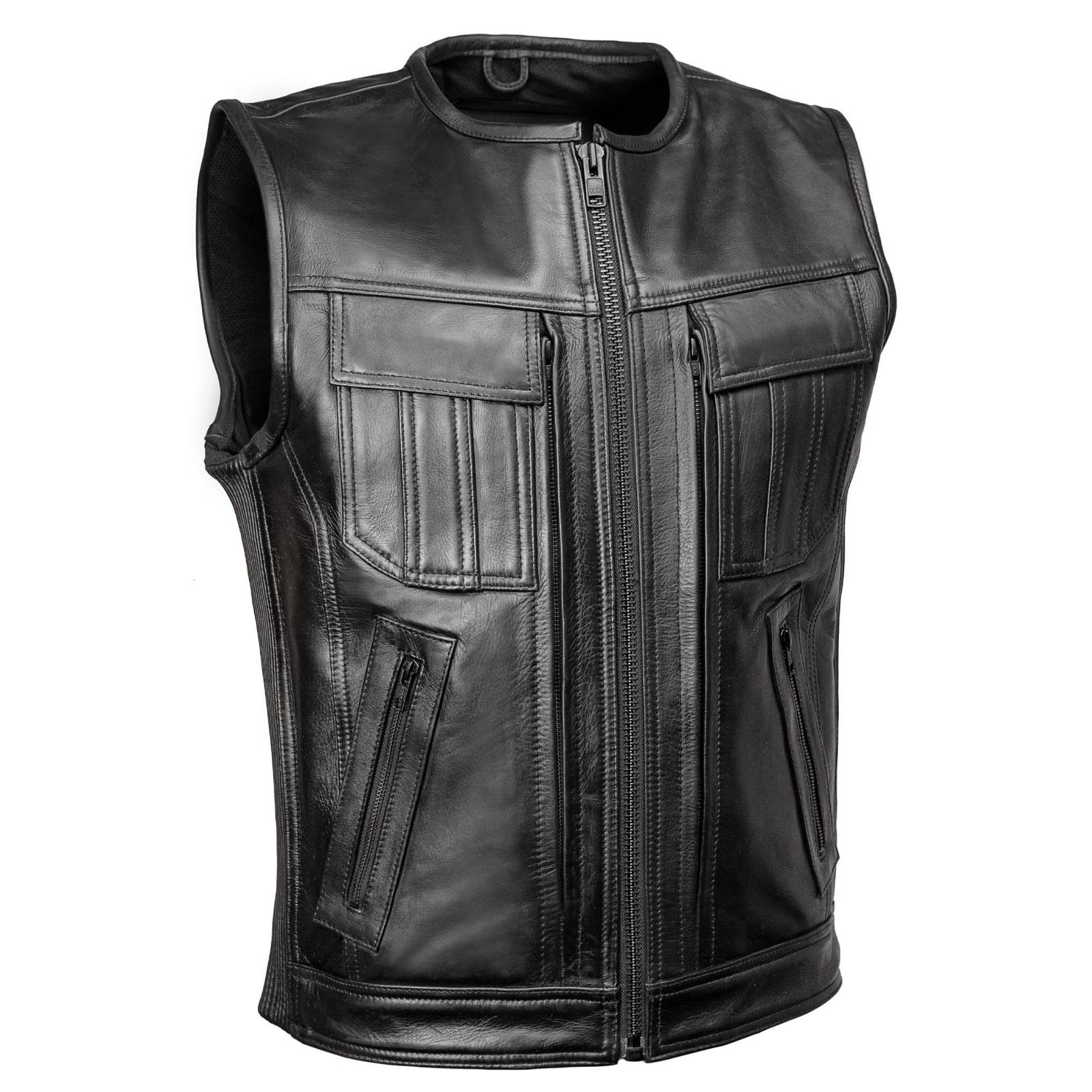Milwaukee Motorcycle Clothing Co. Men's Quick-Draw Stylesh Premium Black Leather MC Biker Vest MMC30001