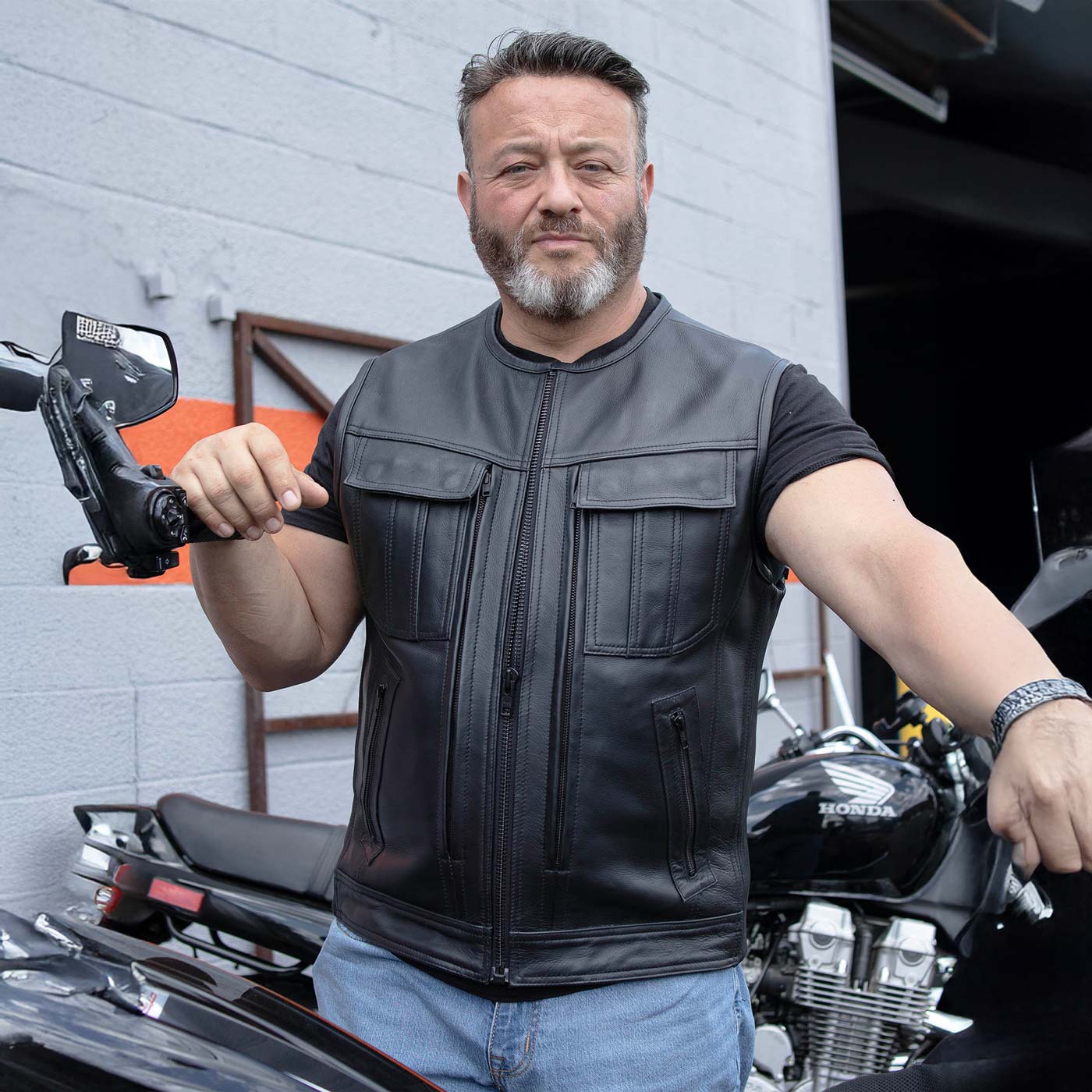 Quick-Draw Leather Vest – Ride Armed. Ride Smart.