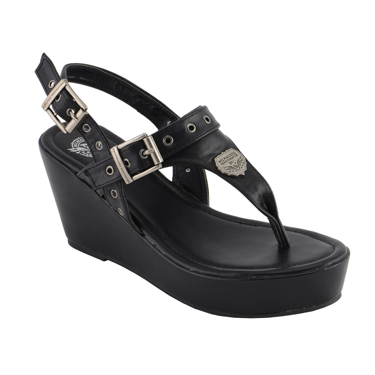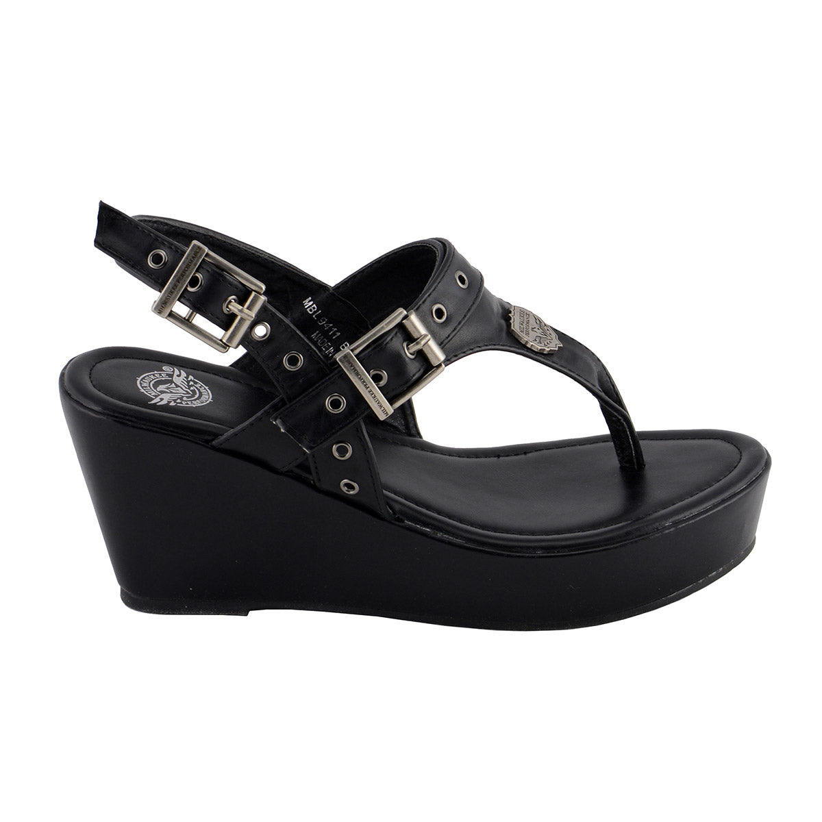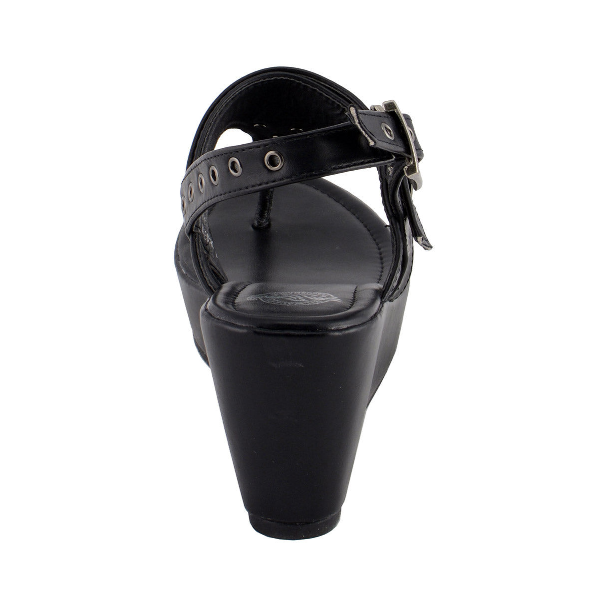 Milwaukee Leather MBL9411 Women's Black Wedge Fashion Casual Sandals with Buckled Straps