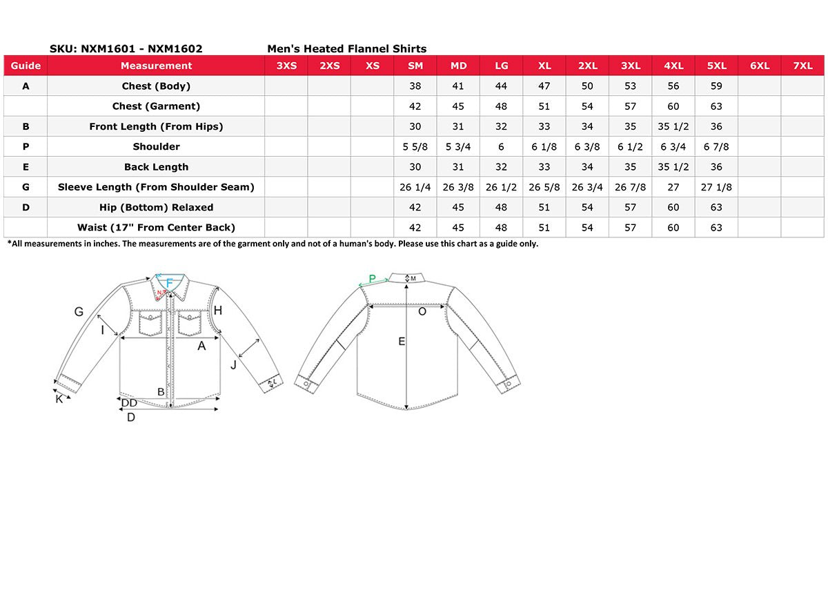 Nexgen Heat Men's NXM1601SET Riffraff Black/Grey/White Heated Flannel Sleeve Shirt Outdoor Activities w/Battery