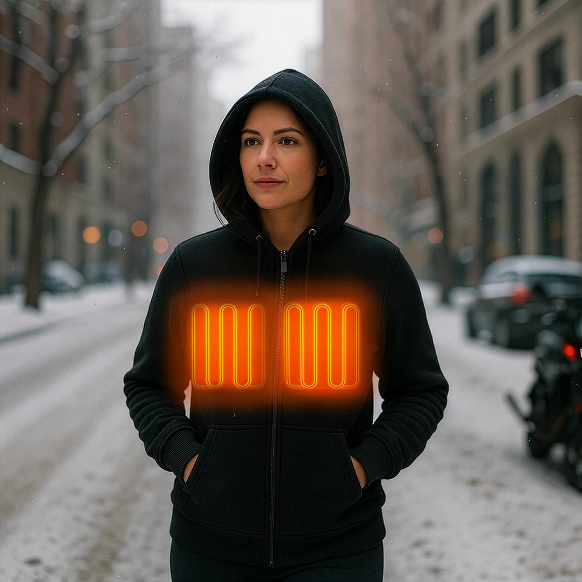 Nexgen Heat Women’s Black Heated Hoodie Jacket, – Front Zipper Insulated Thermal Wear - NXL2713
