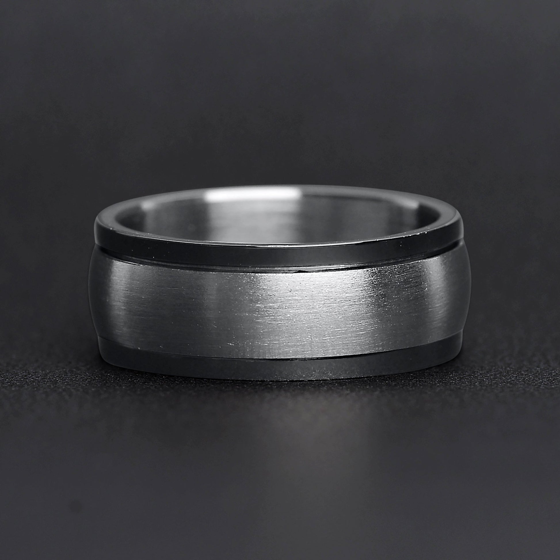 The Polished Stainless Steel & Black Spinner Ring is more than just a ring. Crafted with a polished stainless steel inner layer and top layer that spins 360°, this ring provides entertainment while it also helps to relieve stress. The Polished Stainless Steel & Black Spinner Ring is made with surgical stainless steel that offers enhanced durability, even after everyday wear.