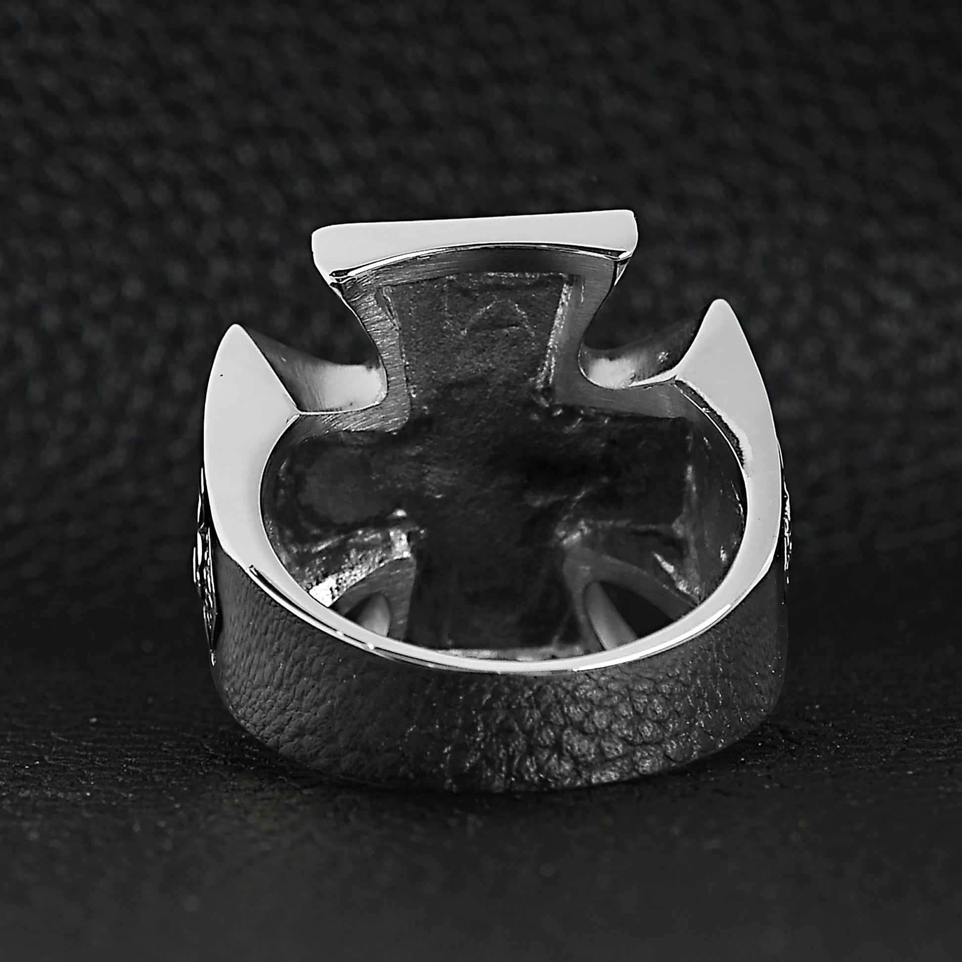 Stainless Steel "13" Skull Maltese Cross Signet Ring