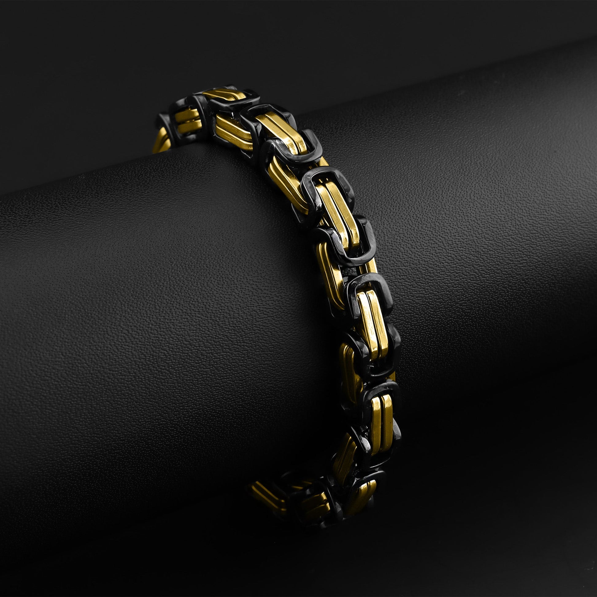 The Stainless Steel Black And 18K Gold PVD Coated Byzantine Chain Bracelet is available in a variety of widths that provide different elements of style to find your best look. Wear your new Byzantine Bracelet without worry in the water or while you sweat, all jewelry from Biker Jewelry Shop is made to last!