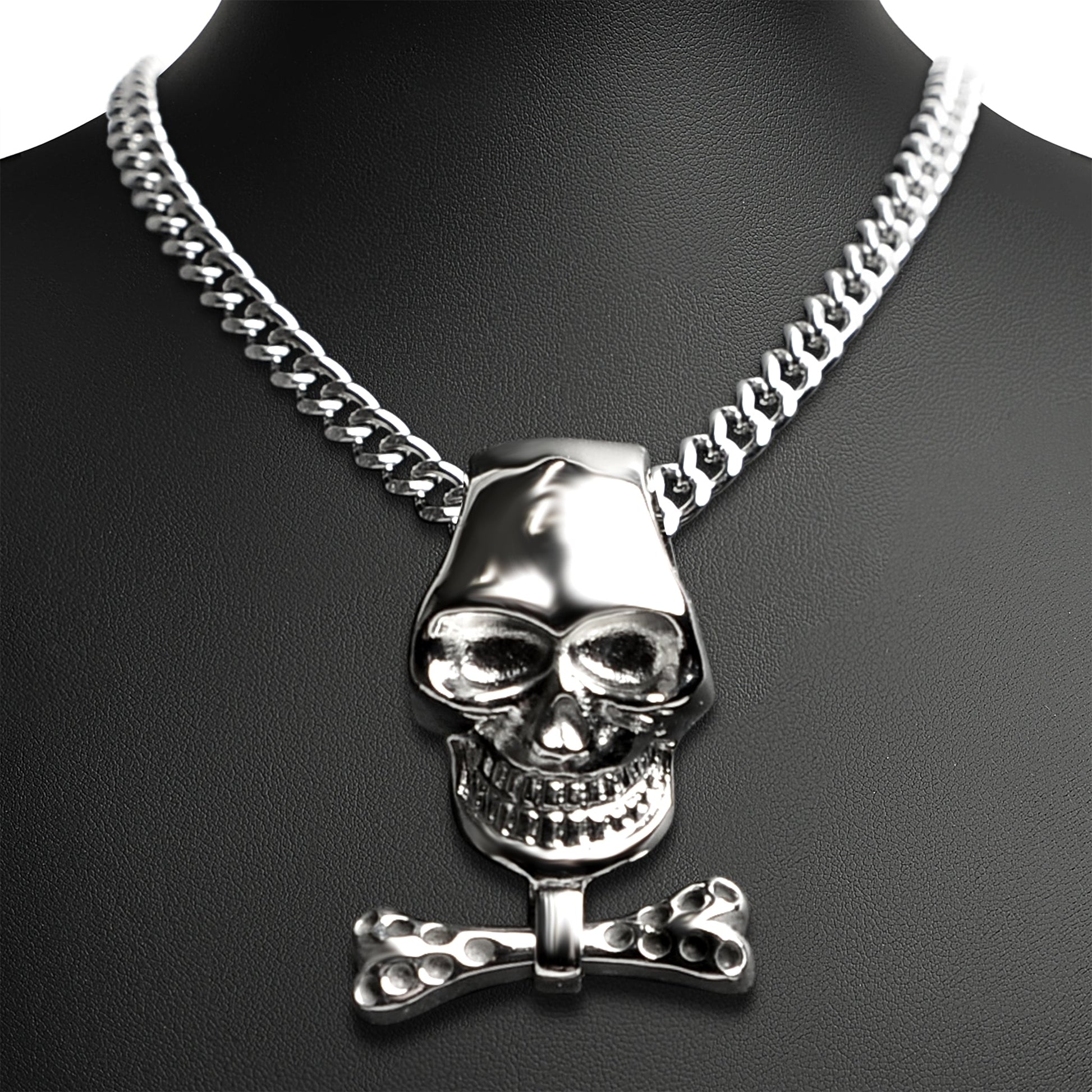 Description: Stainless Steel Skull And Bone Bow Tie Curb Chain Necklace