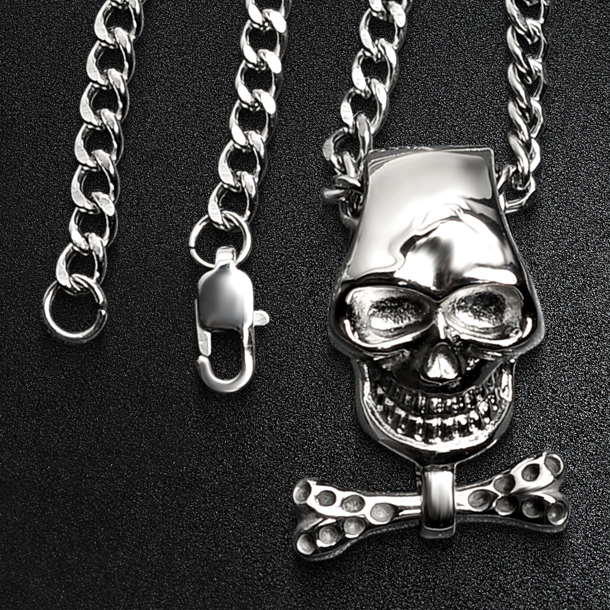 Stainless Steel Skull And Bone Bow Tie Curb Chain Necklace