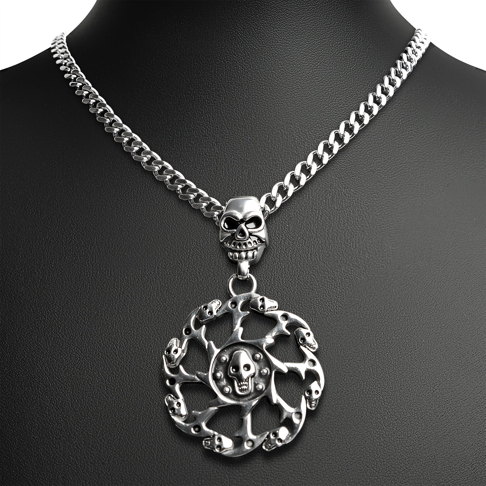 Description: Stainless Steel Skull Spiked Death Wheel Curb Chain Necklace