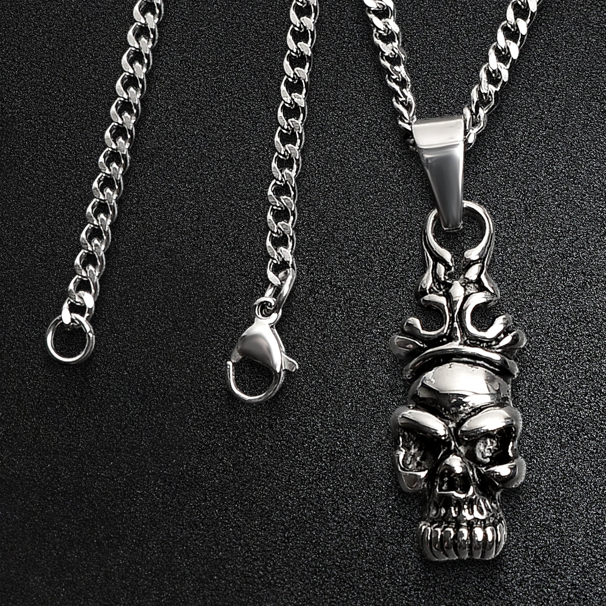 Stainless Steel Skull with Filigree Crown Curb Chain Necklace